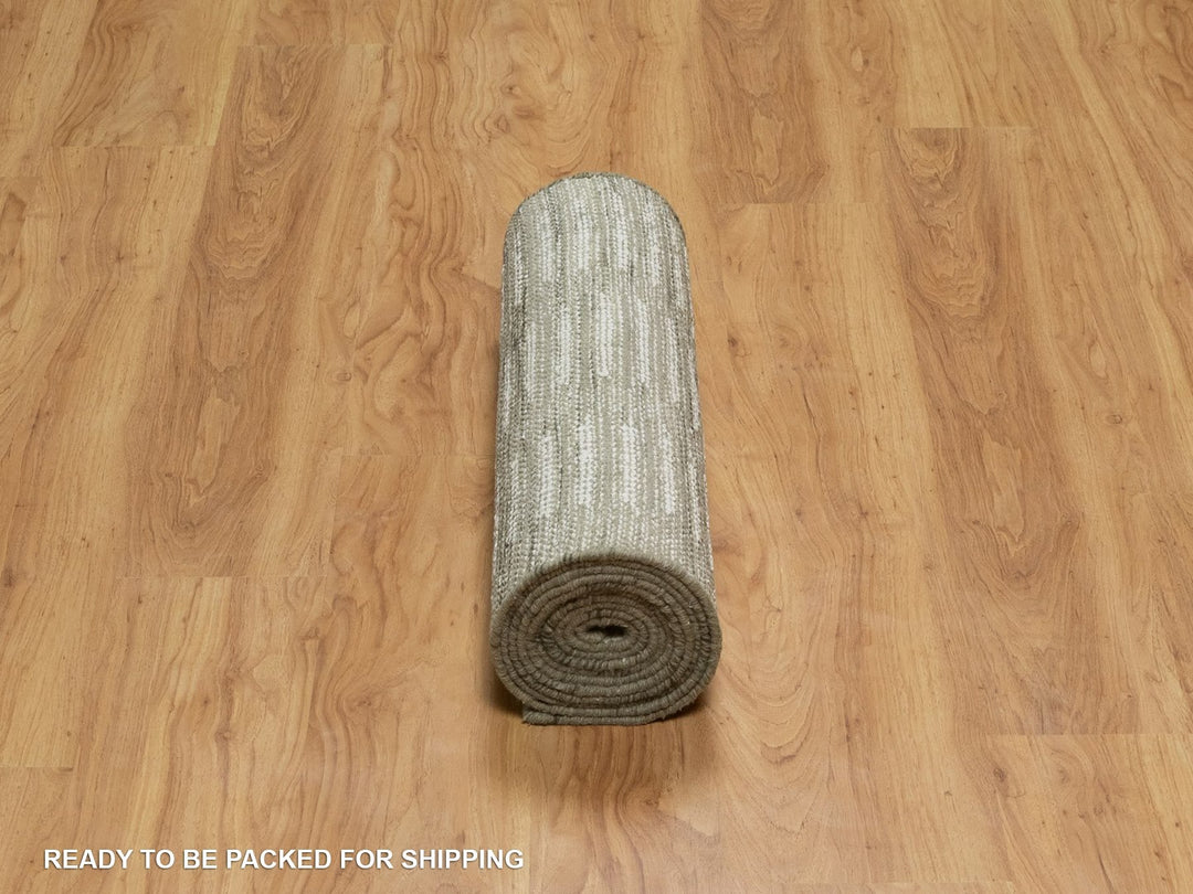 2'6" x 9'11" New Hand Woven Ivory Wool Runner Oriental Rug - MOA10291727