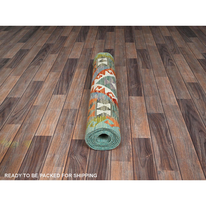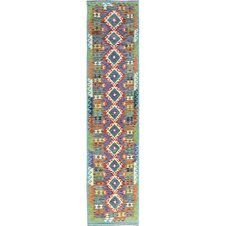 2'8" x 13'2" New Hand Woven Blue Wool Runner Oriental Rug - MOA1021235
