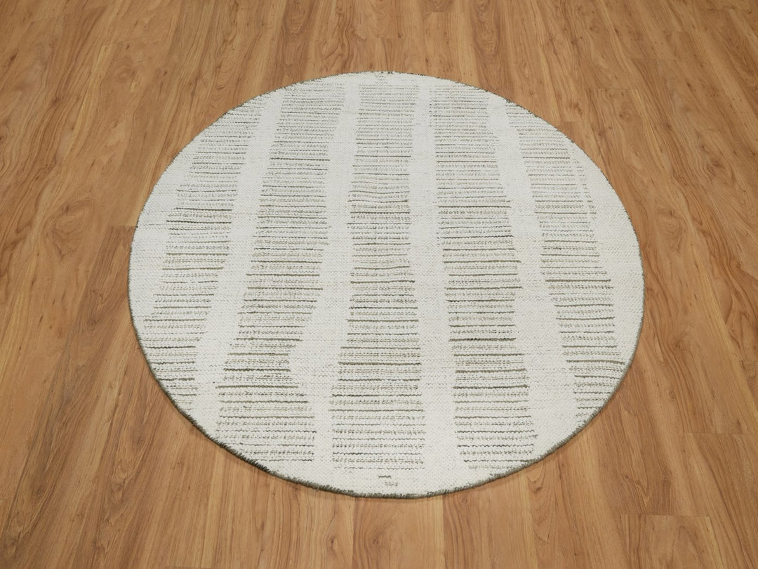 4'11" x 4'11" New Hand Woven Ivory Wool Round Oriental Rug - MOA10291740