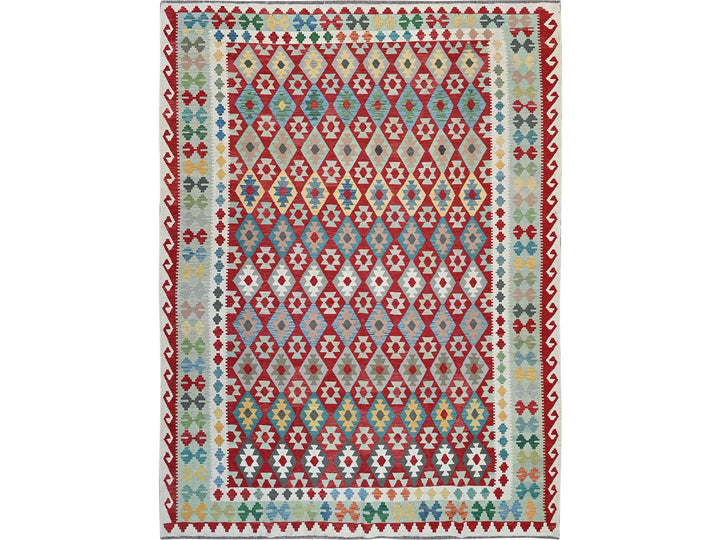 8'10" x 11'8" New Hand Woven Red Wool Rectangle Oriental Rug - MOA1021244