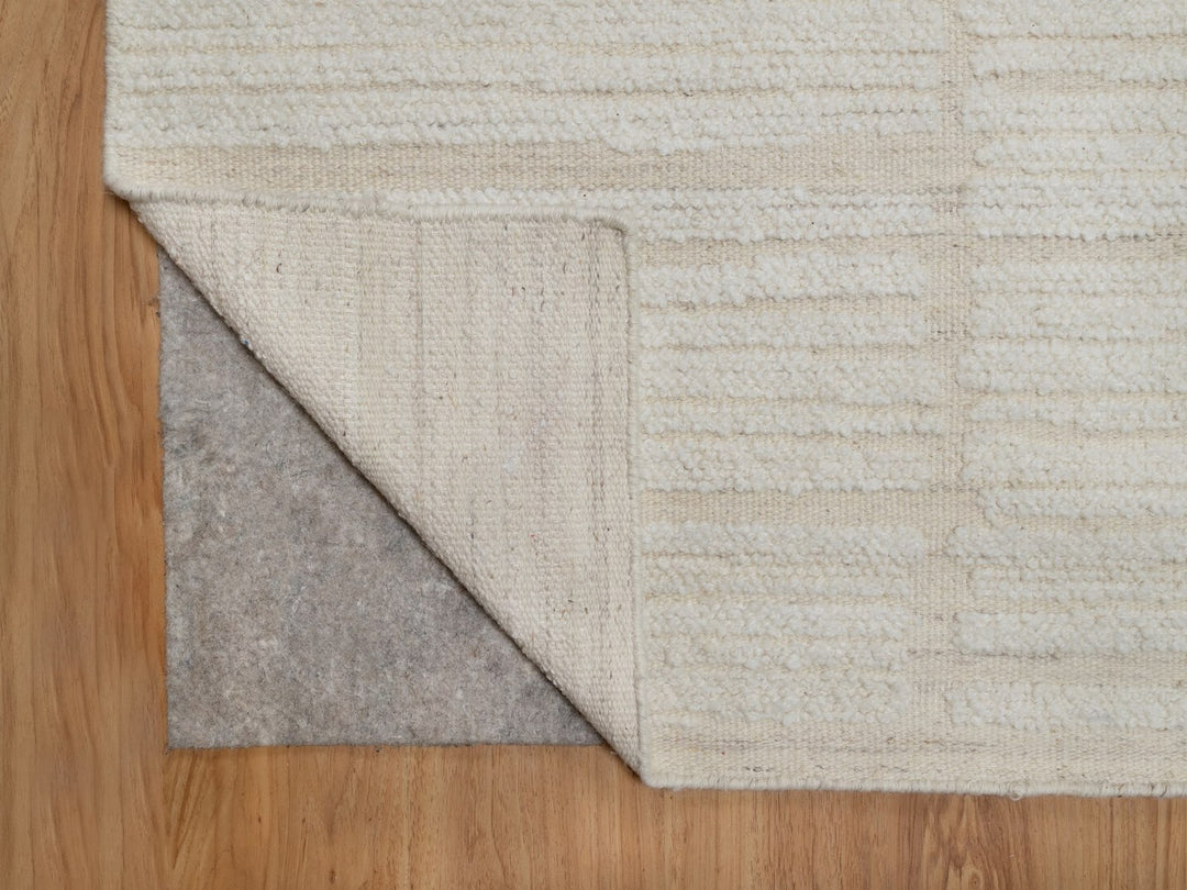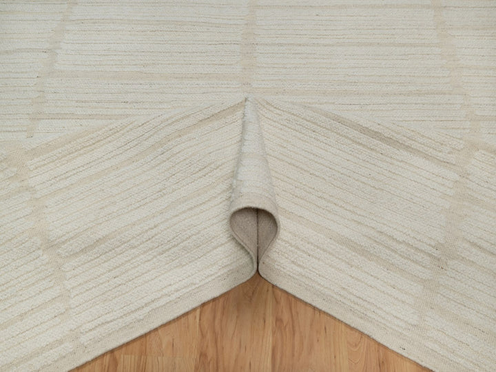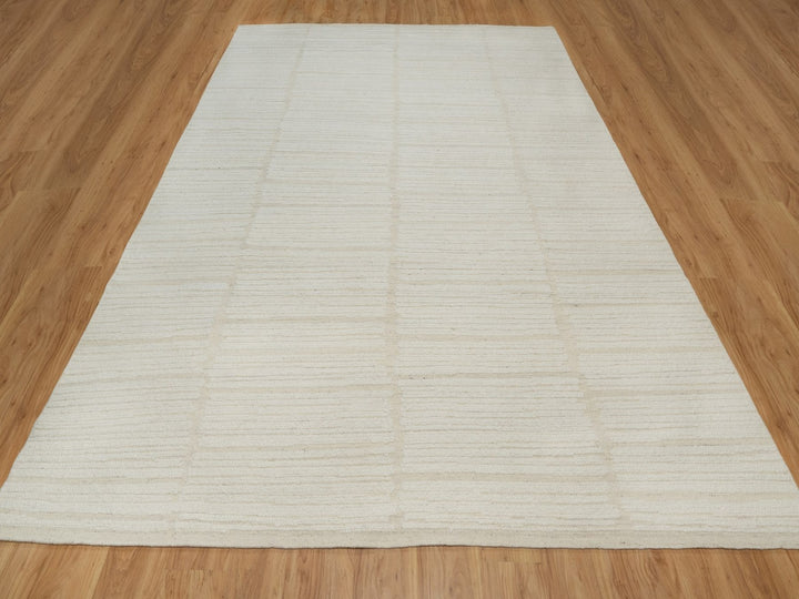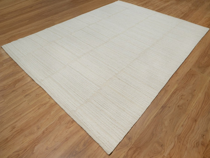 9'0" x 12'0" New Hand Woven Ivory Wool Rectangle Oriental Rug - MOA10291718