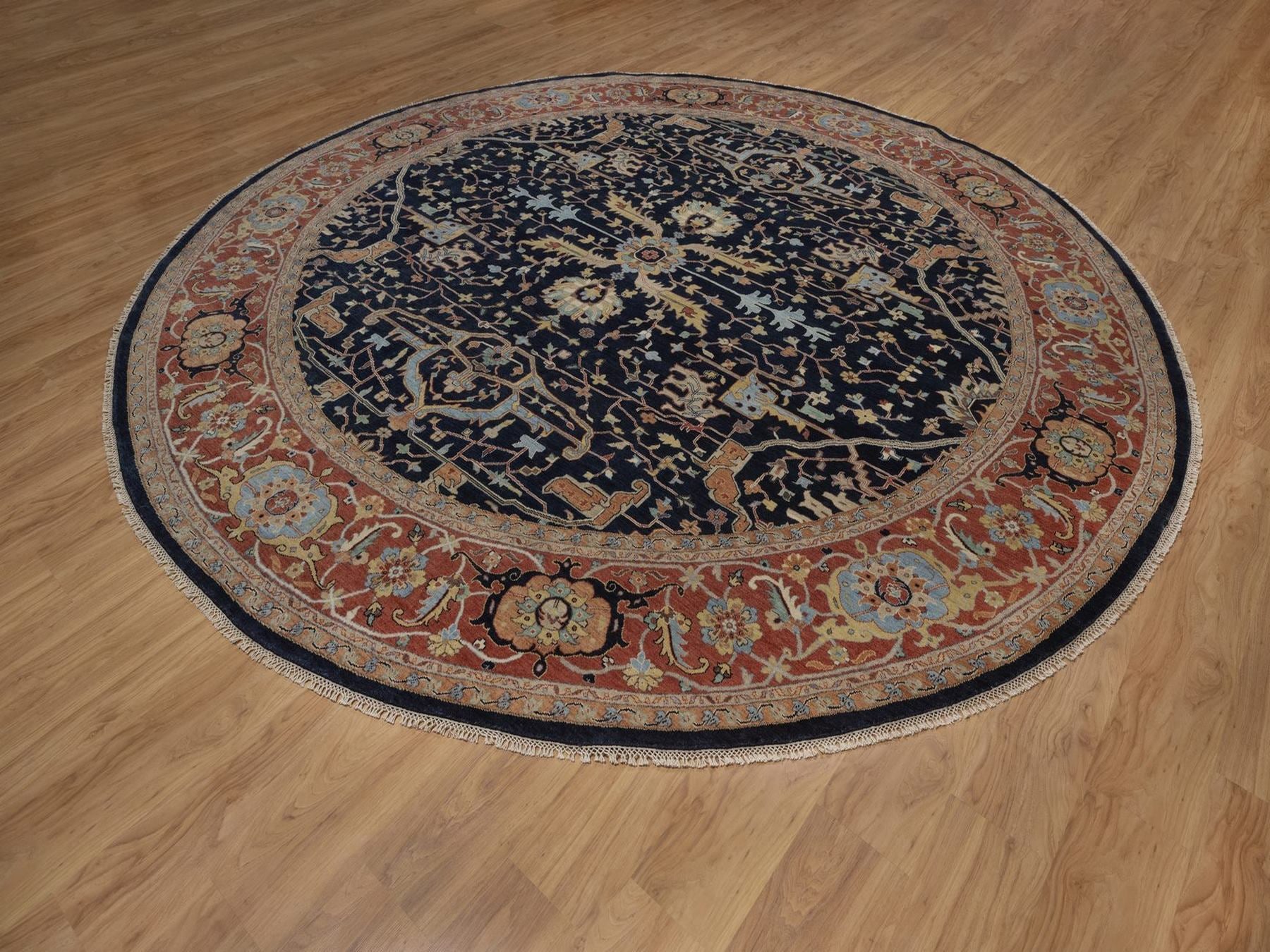 11'9" x 11'9" New Hand Knotted Blue Wool Round Oriental Rug - MOA10292434