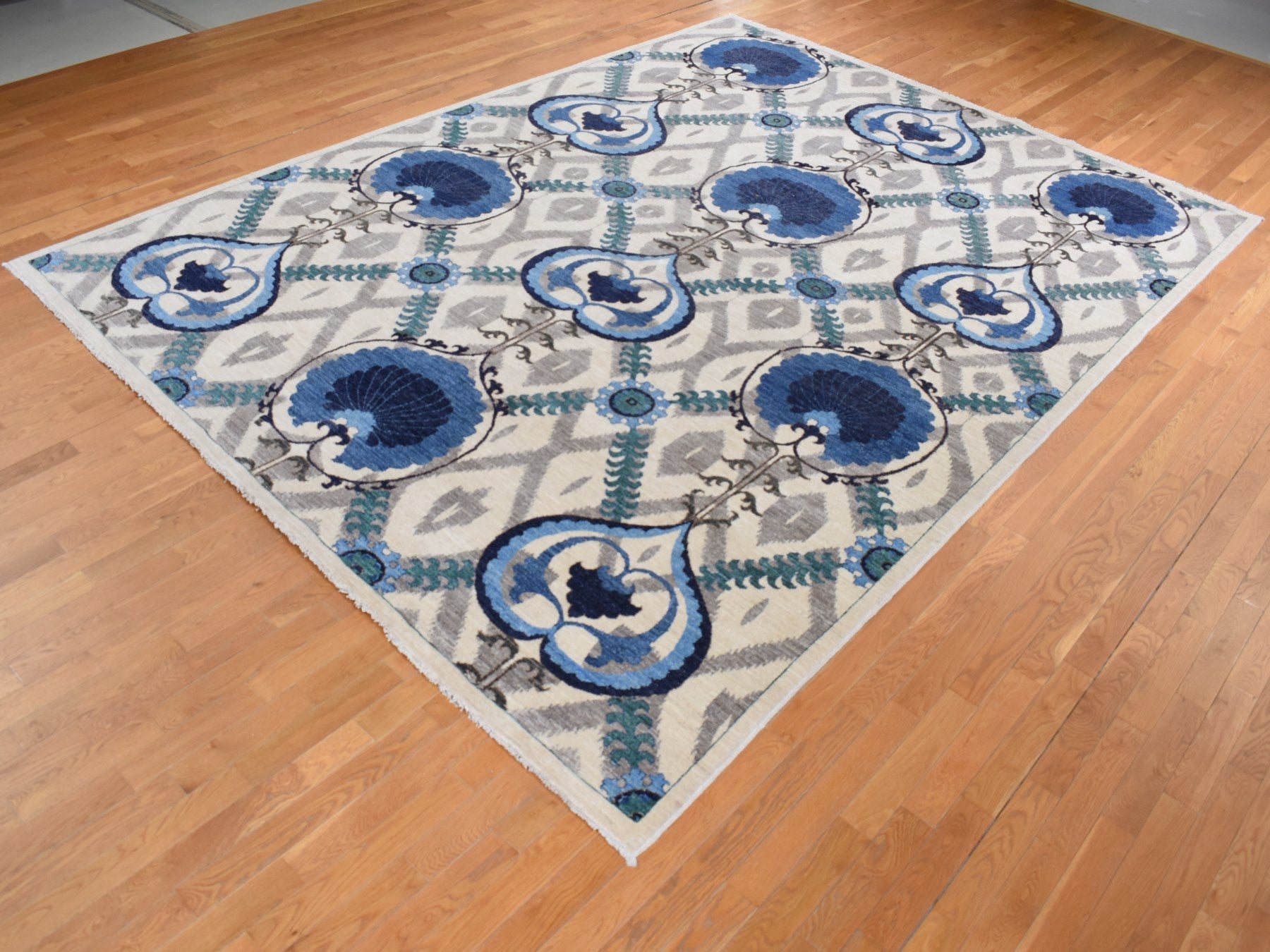 10'0" x 13'9" New Hand Knotted Ivory Wool Rectangle Oriental Rug - MOA10287511