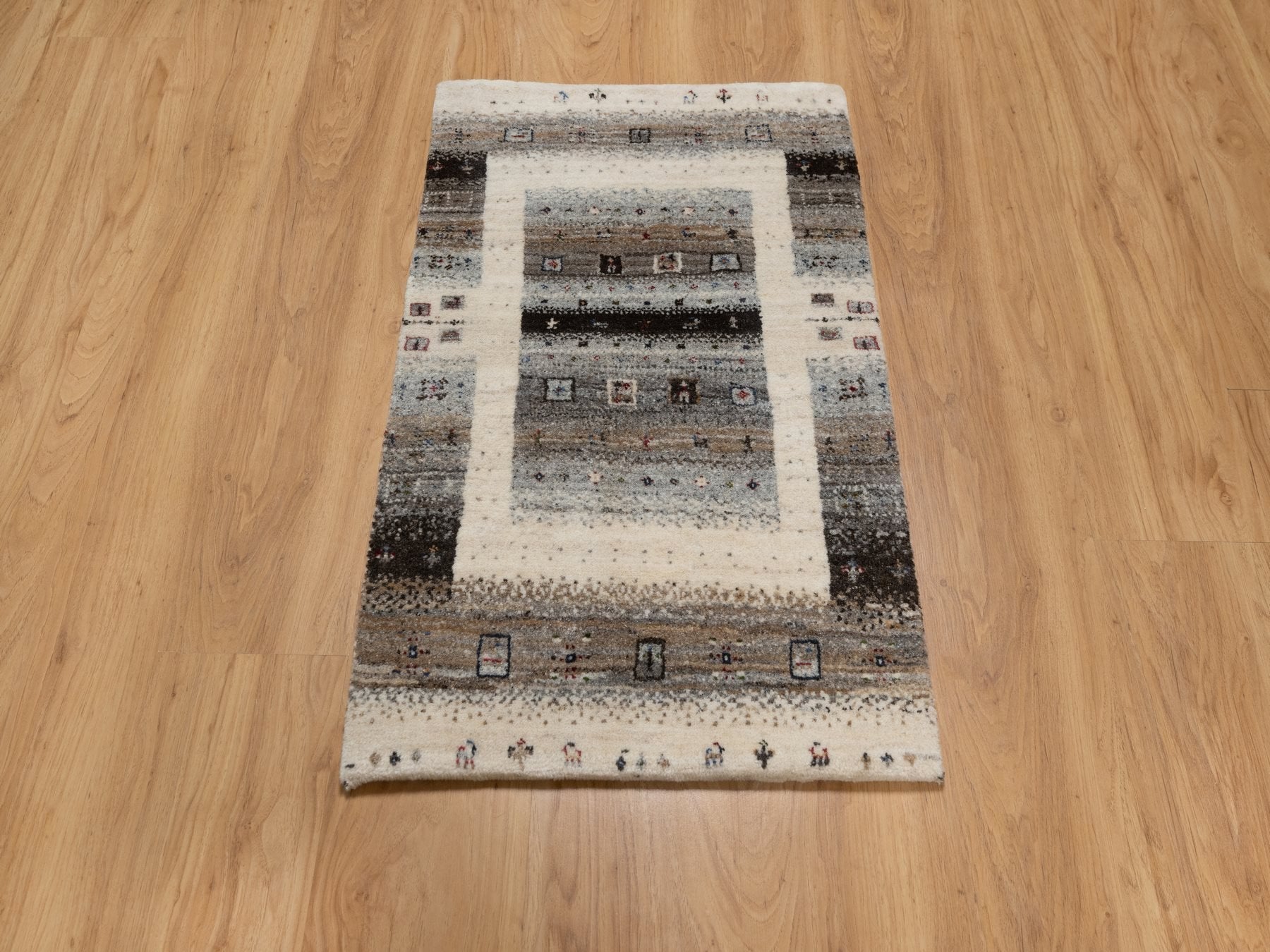 1'11" x 2'11" New Hand Knotted Ivory Wool Rectangle Oriental Rug - MOA10291325