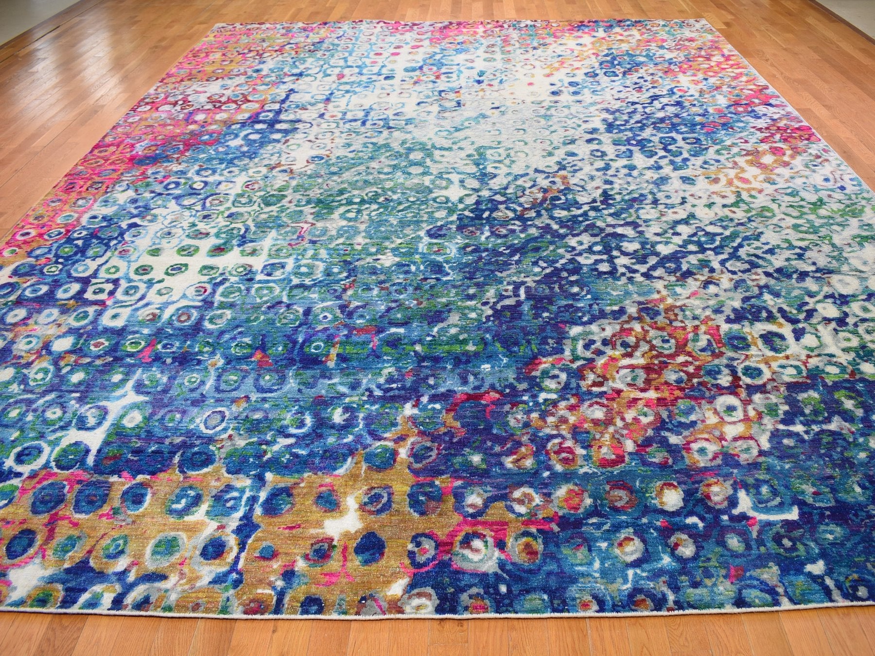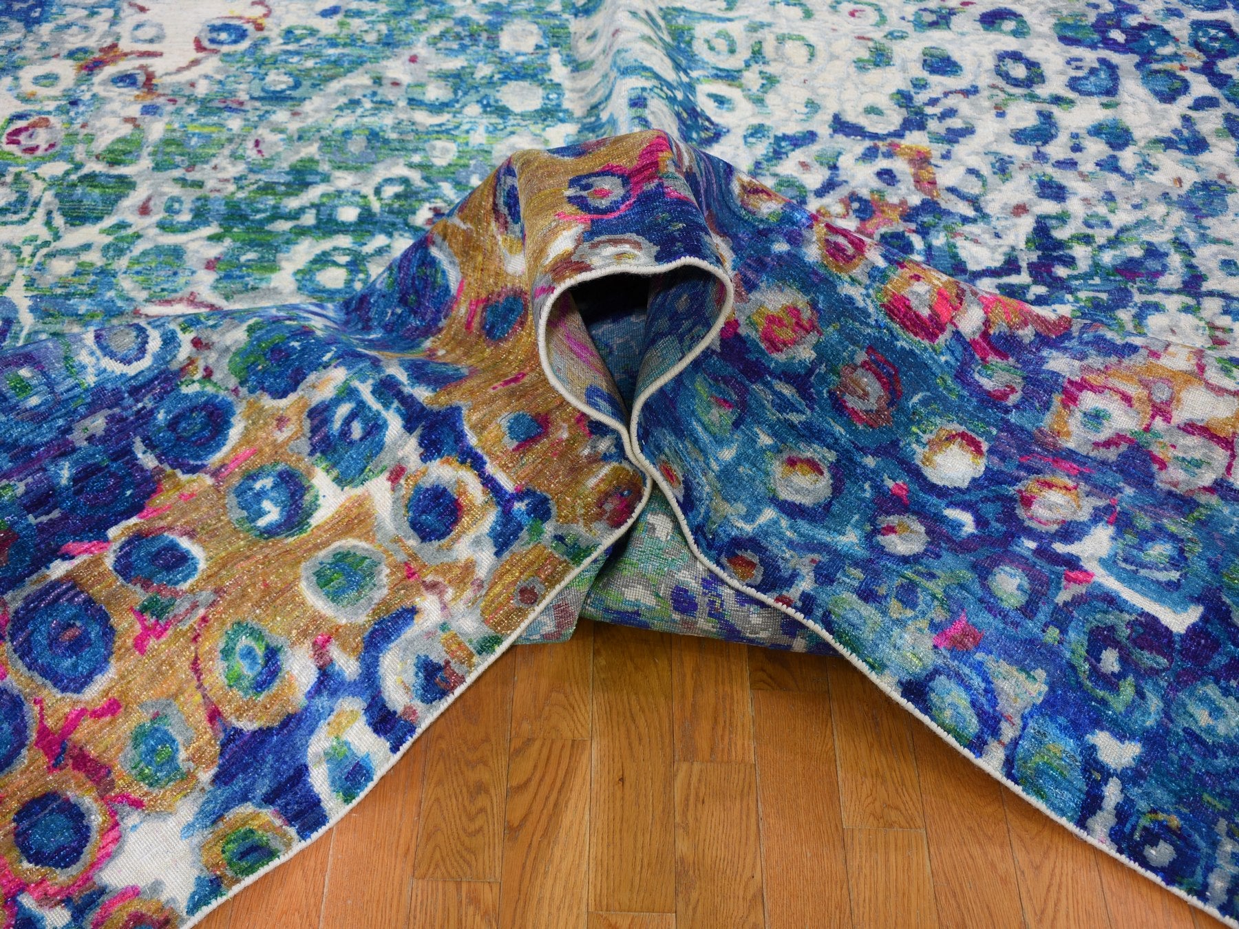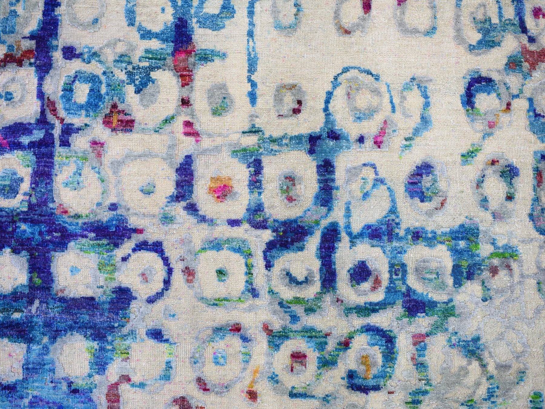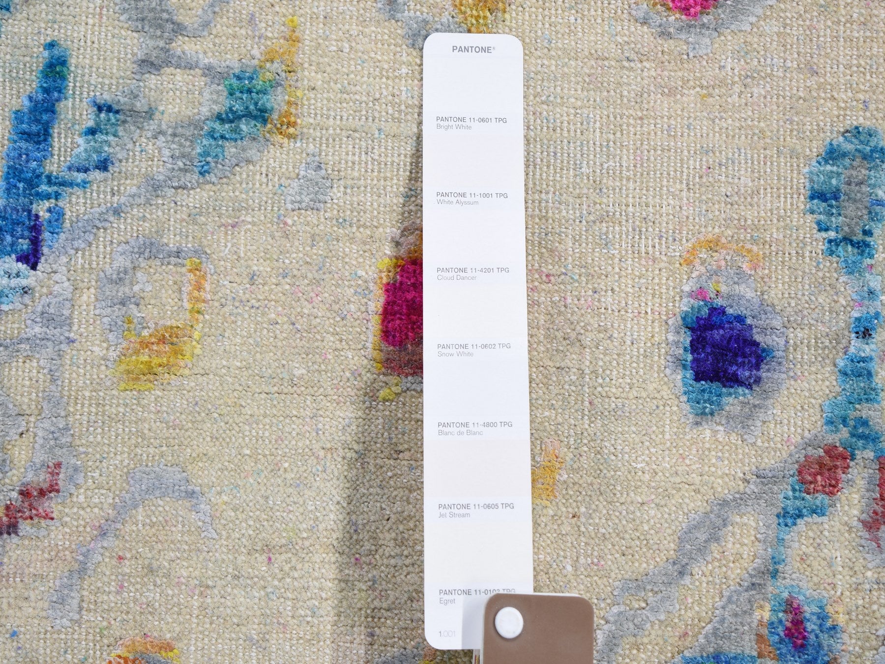 11'10" x 15'0" New Hand Knotted Ivory Wool & Sari Silk Rectangle Oriental Rug - MOA10259265