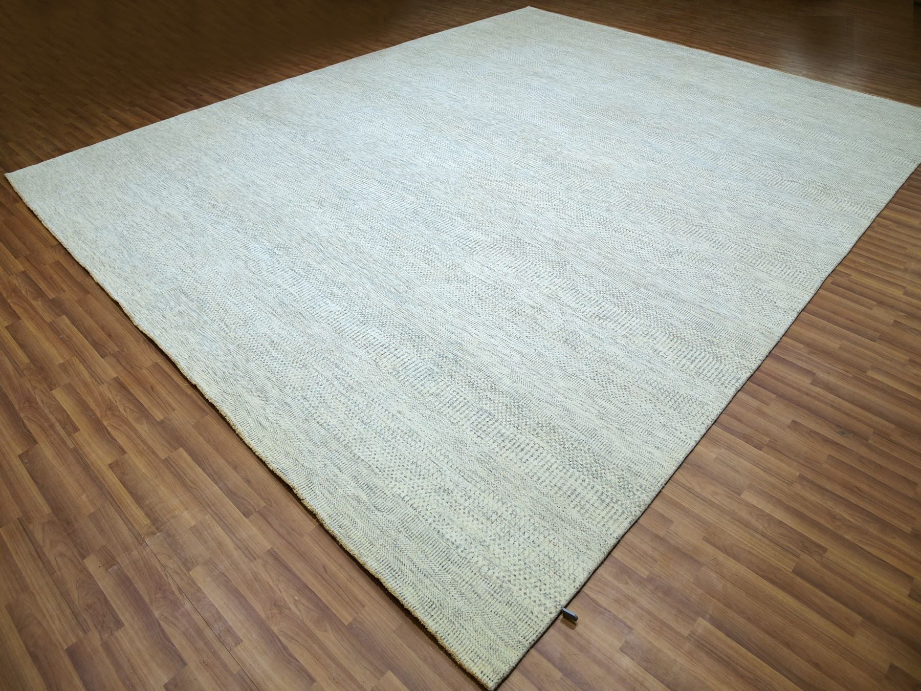 11'11" x 14'11" New Hand Knotted Ivory Wool Rectangle Oriental Rug - MOA10279973