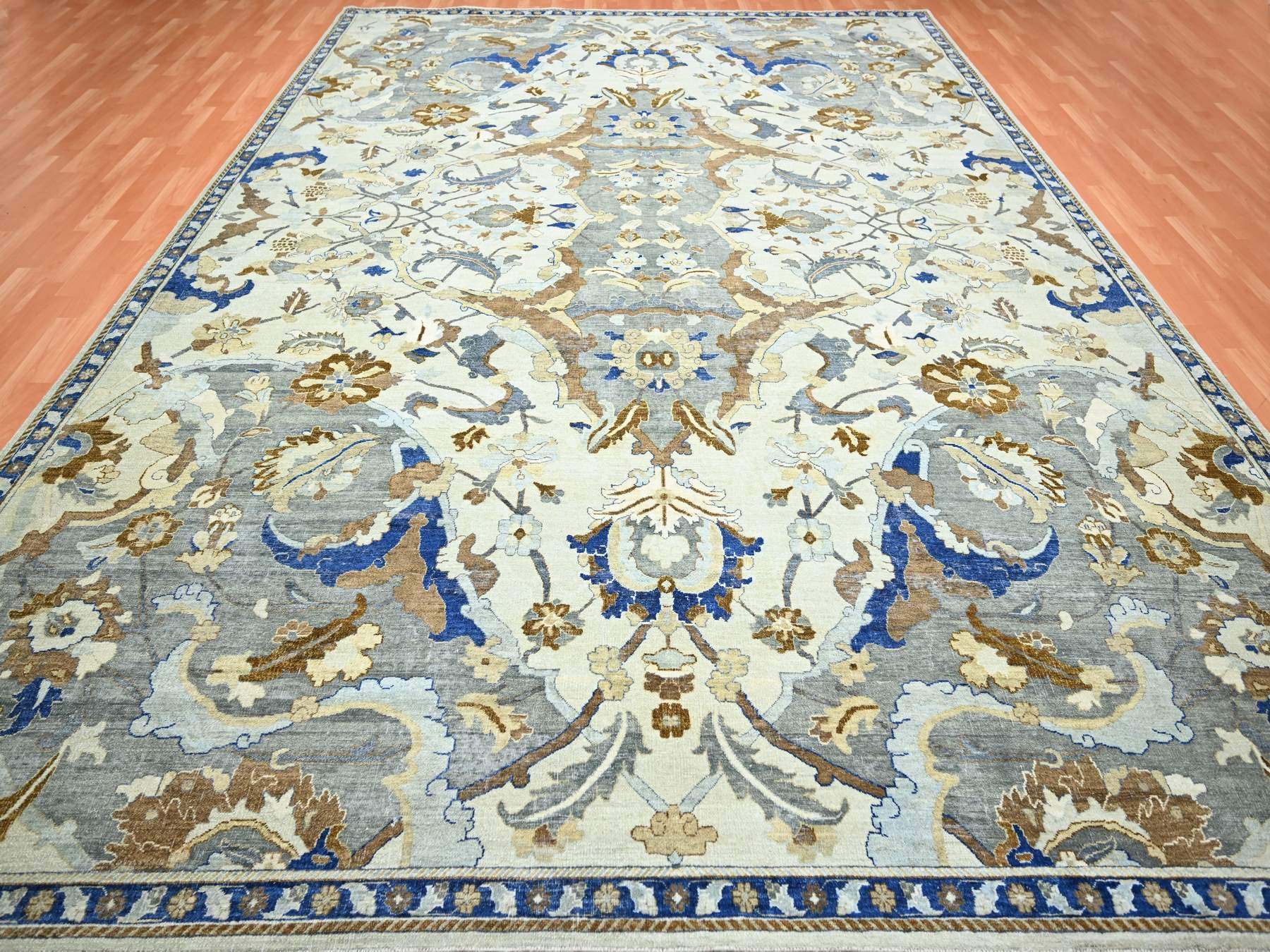 11'11" x 15'5" New Hand Knotted Ivory Wool Rectangle Oriental Rug - MOA10275474
