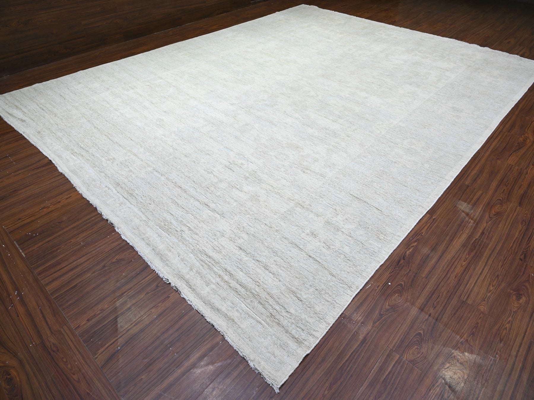 11'8" x 15'2" New Hand Knotted Ivory Wool Rectangle Oriental Rug - MOA10288027