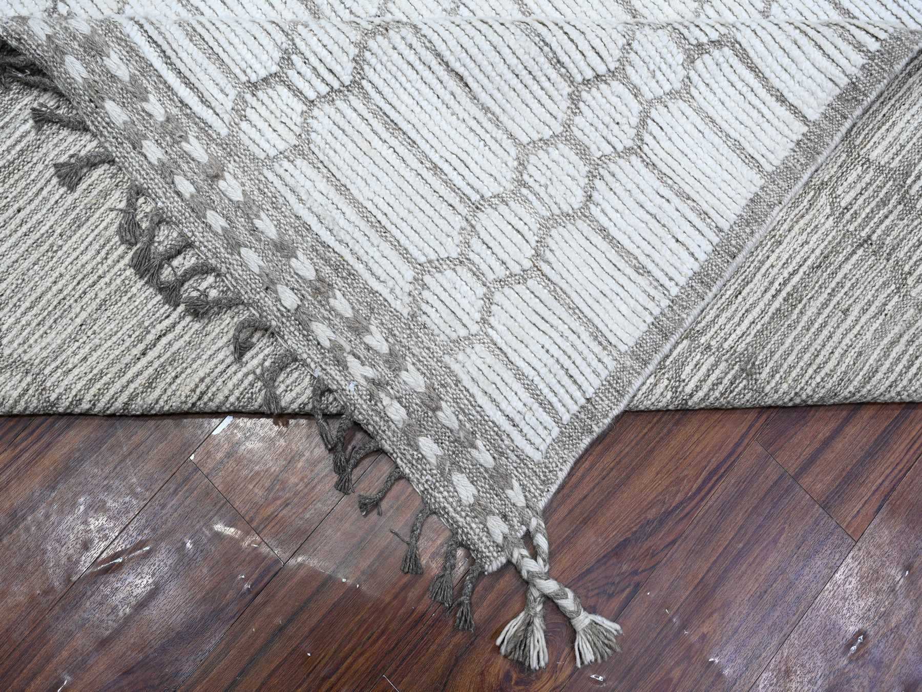 11'9" x 15'8" New Hand Knotted Ivory Wool Rectangle Oriental Rug - MOA10289136