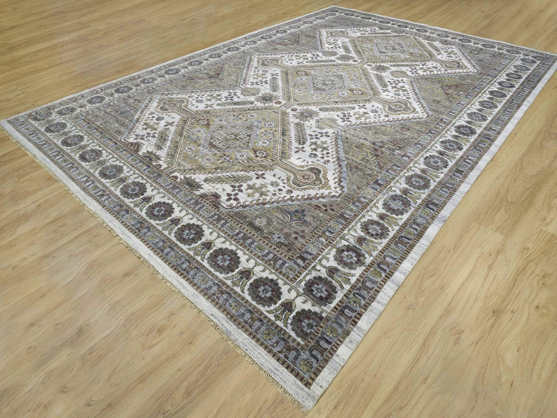 12'0" x 17'10" New Hand Knotted Ivory Wool Rectangle Oriental Rug - MOA10265621