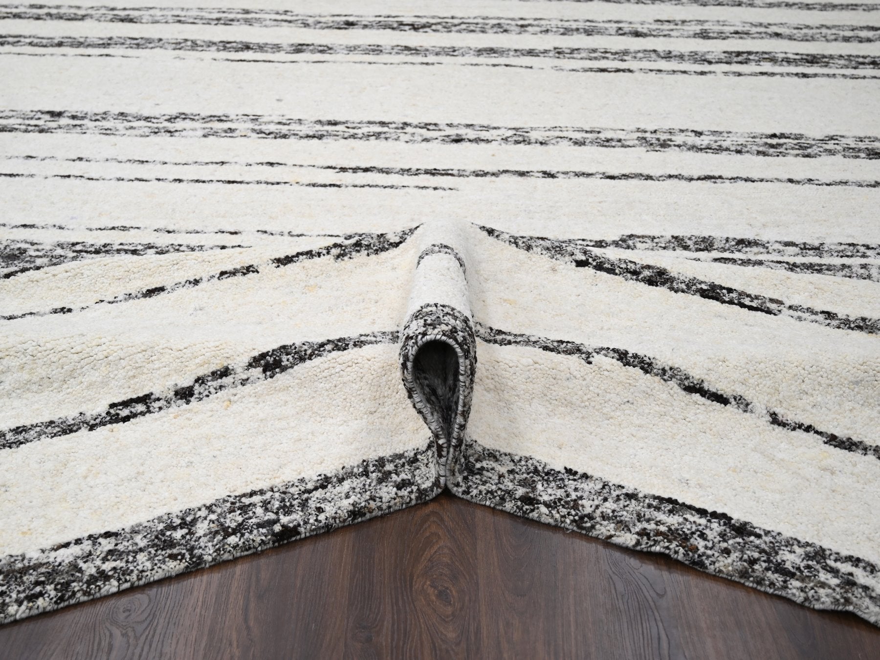 12'0" x 17'9" New Hand Knotted Ivory Wool Rectangle Oriental Rug - MOA10284190