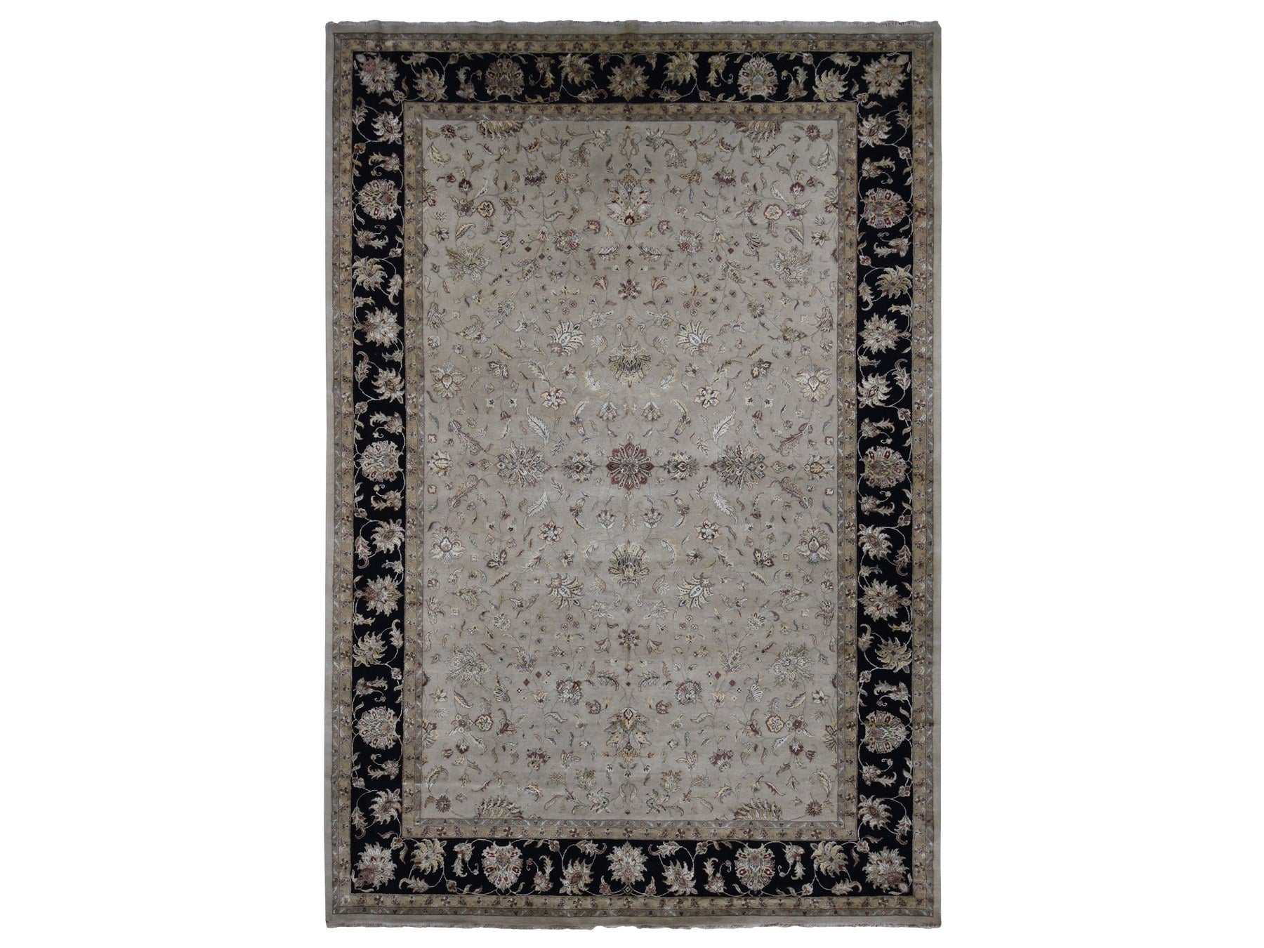 12'0" x 18'2" New Hand Knotted Ivory Wool & Silk Rectangle Oriental Rug - MOA10287666