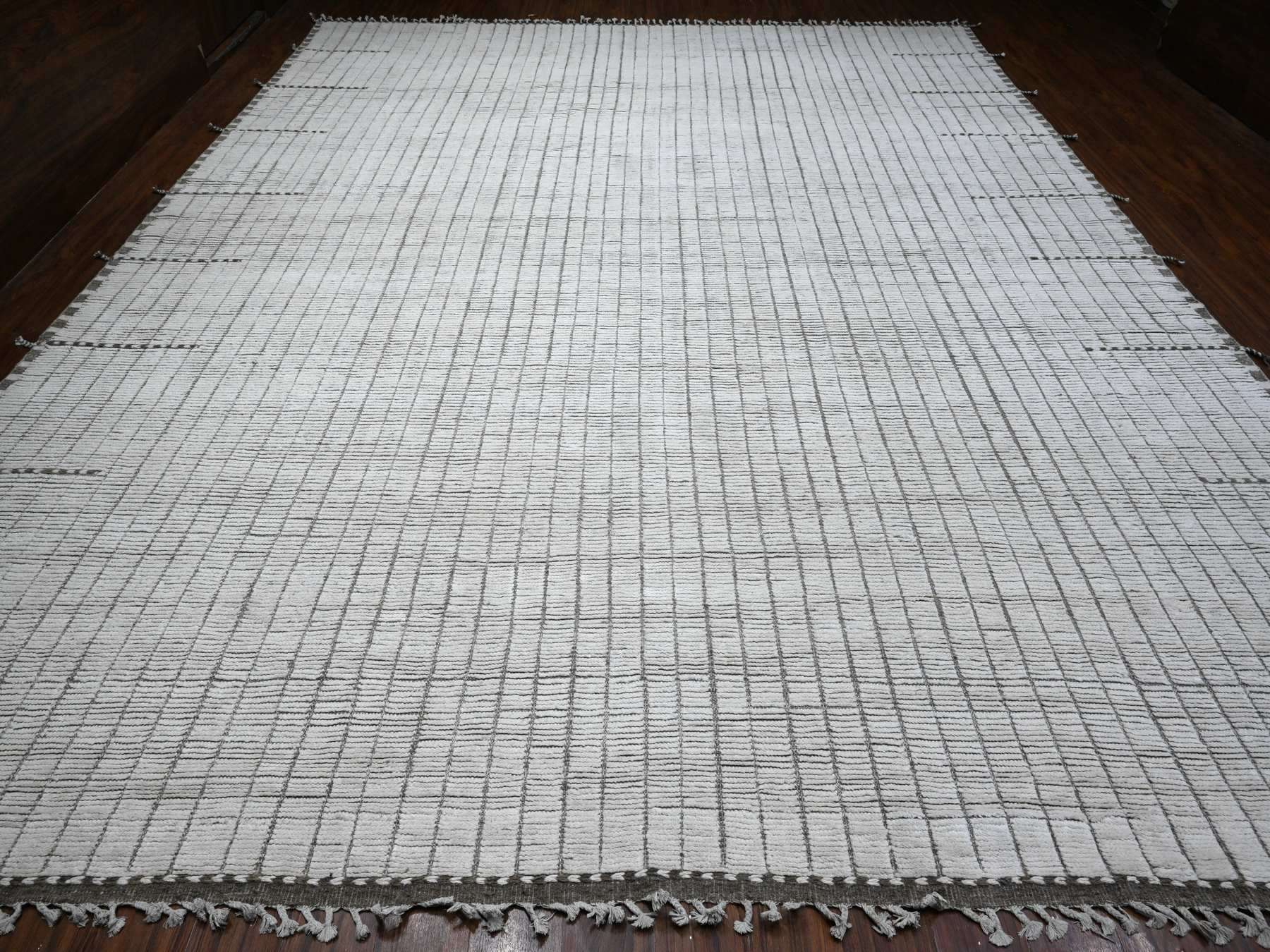 12'2" x 15'2" New Hand Knotted Ivory Wool Rectangle Oriental Rug - MOA10289192