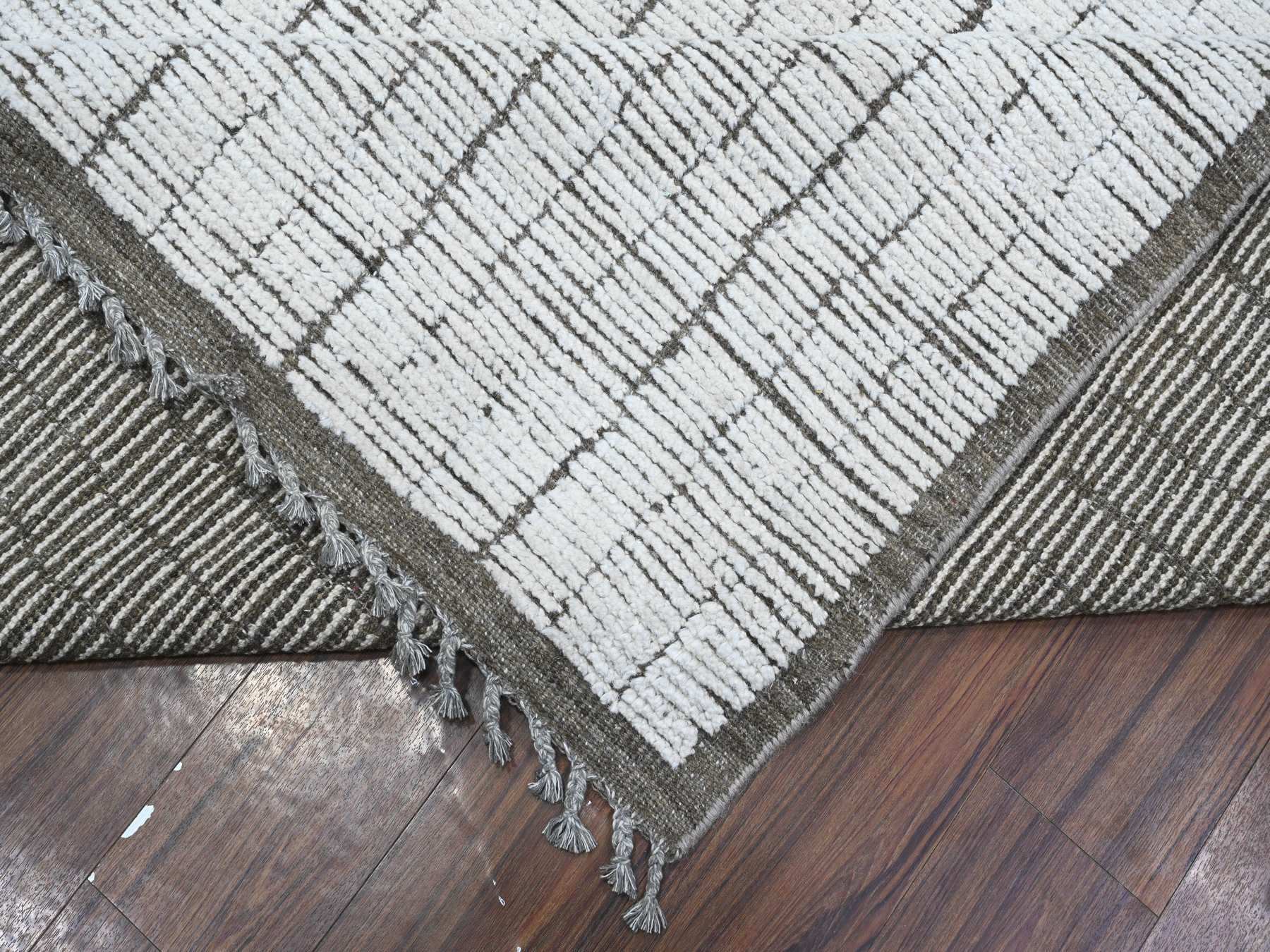 12'2" x 15'9" New Hand Knotted Ivory Wool Rectangle Oriental Rug - MOA10289335