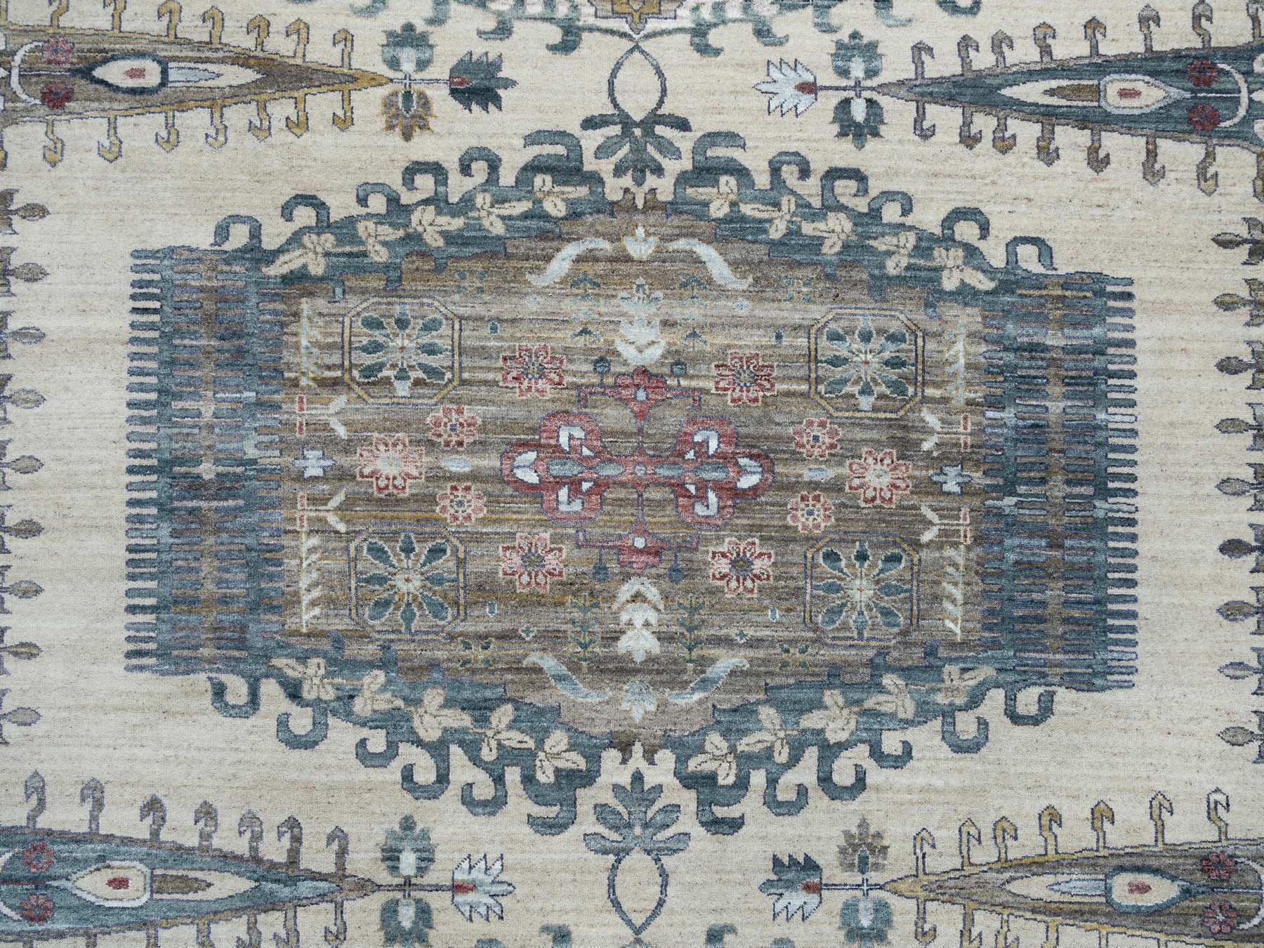 13'10" x 16'2" New Hand Knotted Ivory Wool Rectangle Oriental Rug - MOA10265456