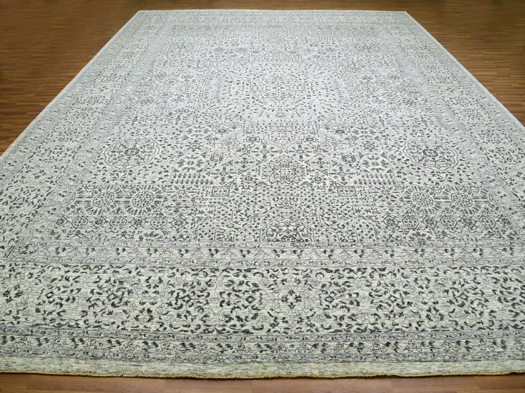 14'1" x 17'9" New Hand Knotted Ivory Wool Rectangle Oriental Rug - MOA10279982