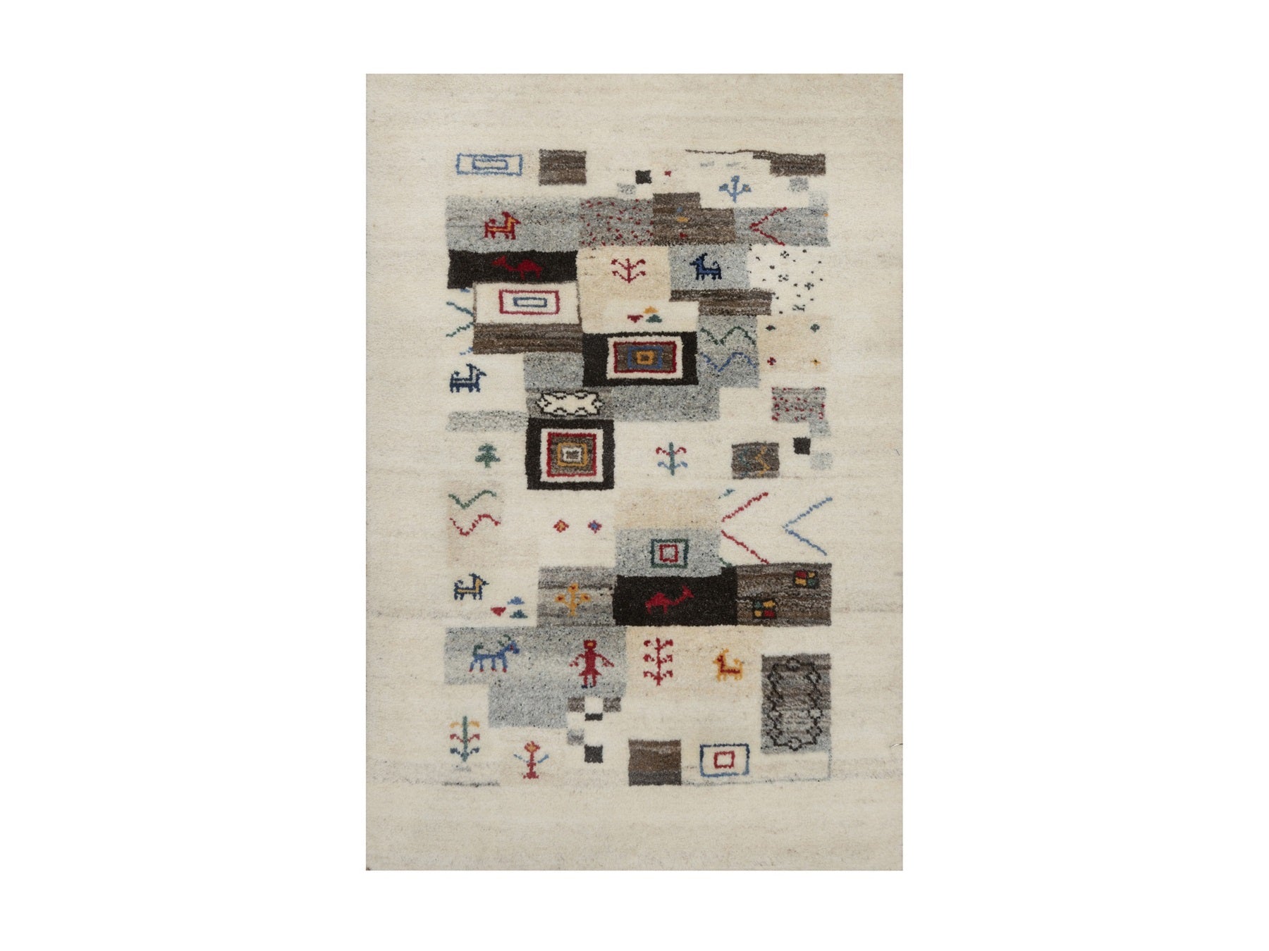 2'1" x 3'1" New Hand Knotted Ivory Wool Rectangle Oriental Rug - MOA10291323