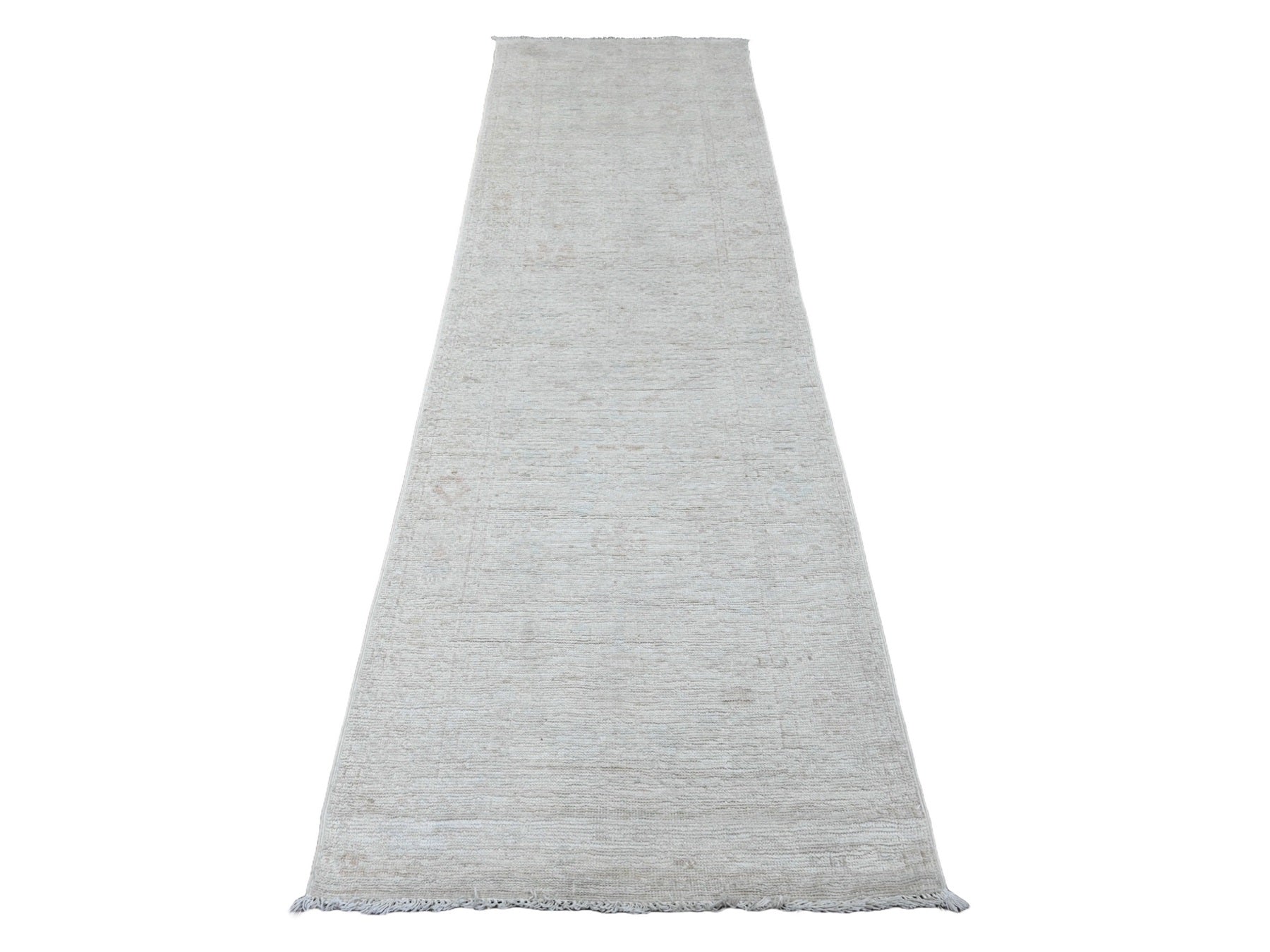2'10" x 9'7" New Hand Knotted Ivory Wool Runner Oriental Rug - MOA10220665