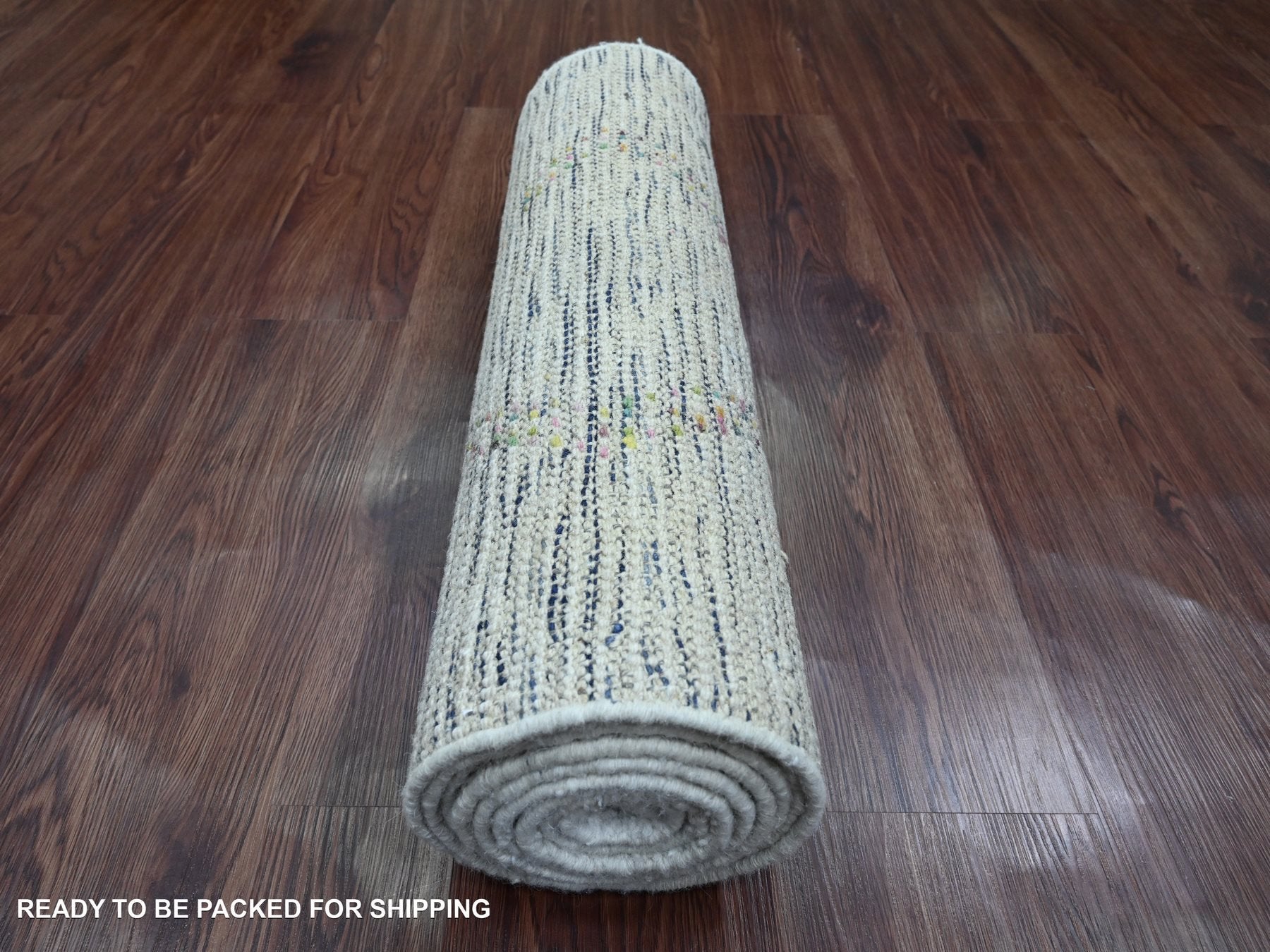 2'4" x 10'7" New Hand Knotted Ivory Wool Runner Oriental Rug - MOA10220283