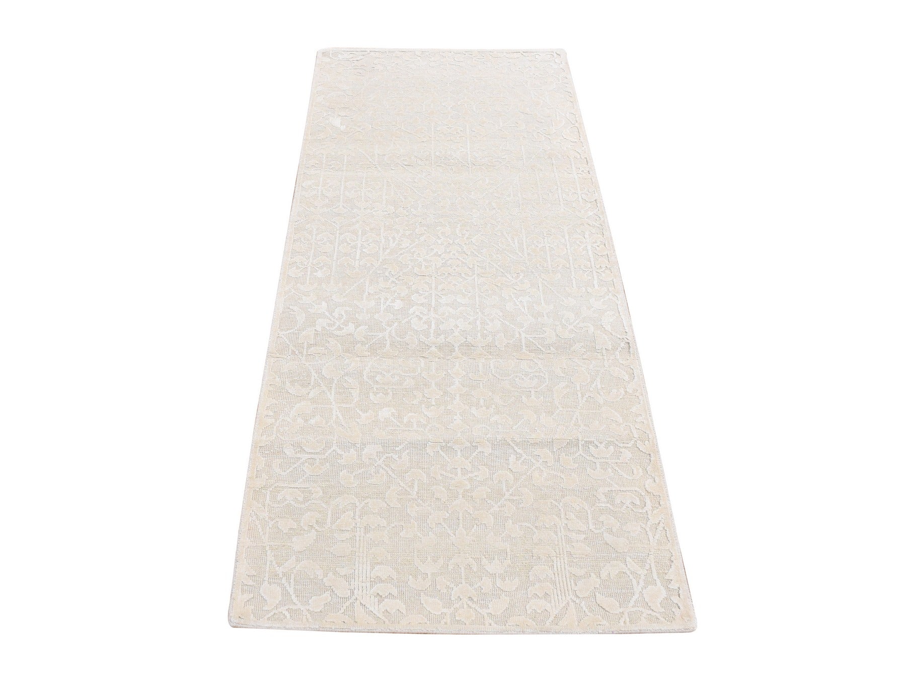 2'5" x 6'0" New Hand Knotted Ivory Wool & Silk Runner Oriental Rug - MOA10287326
