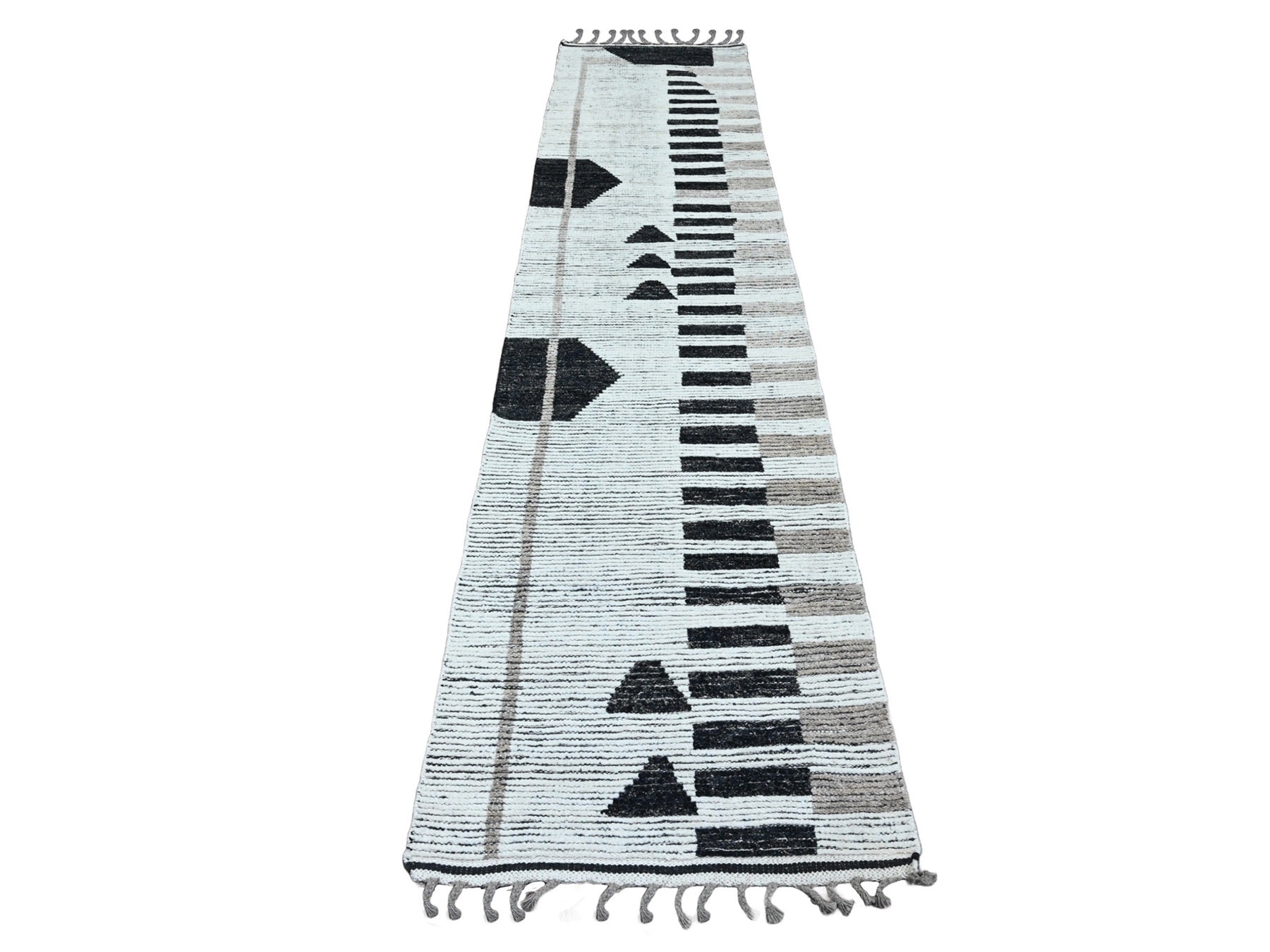 2'6" x 10'11" New Hand Knotted Ivory Wool Runner Oriental Rug - MOA10220285