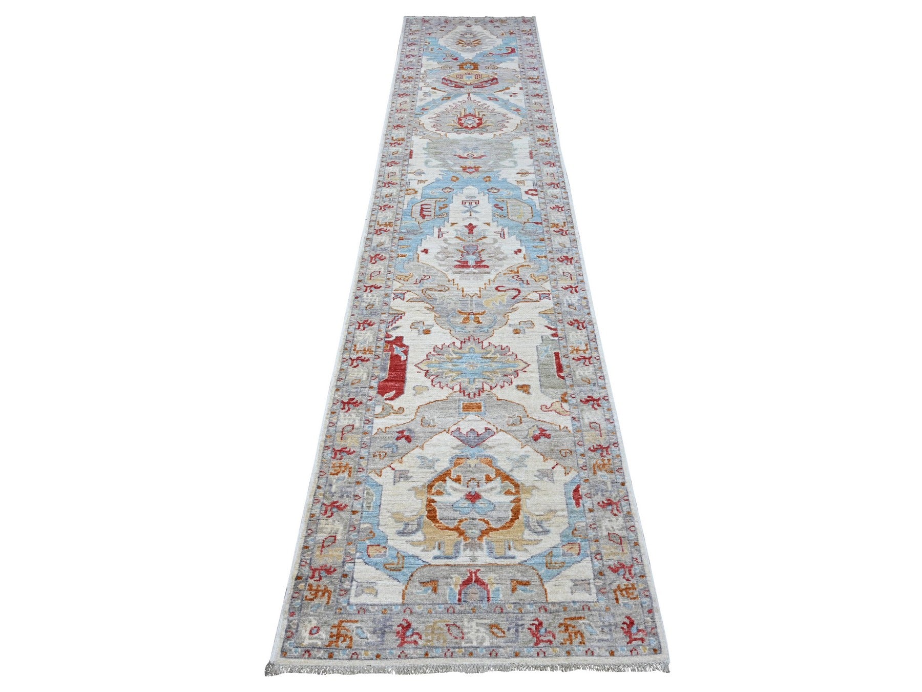 2'6" x 12'4" New Hand Knotted Ivory Wool Runner Oriental Rug - MOA10288889