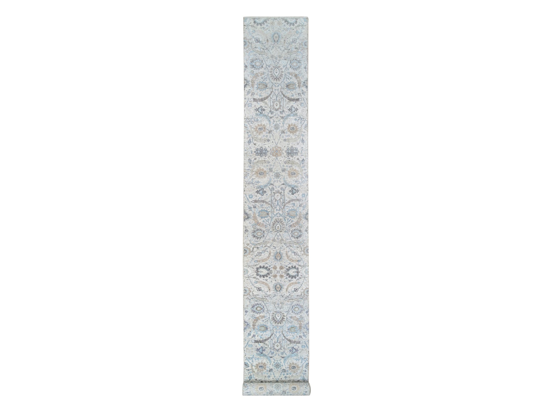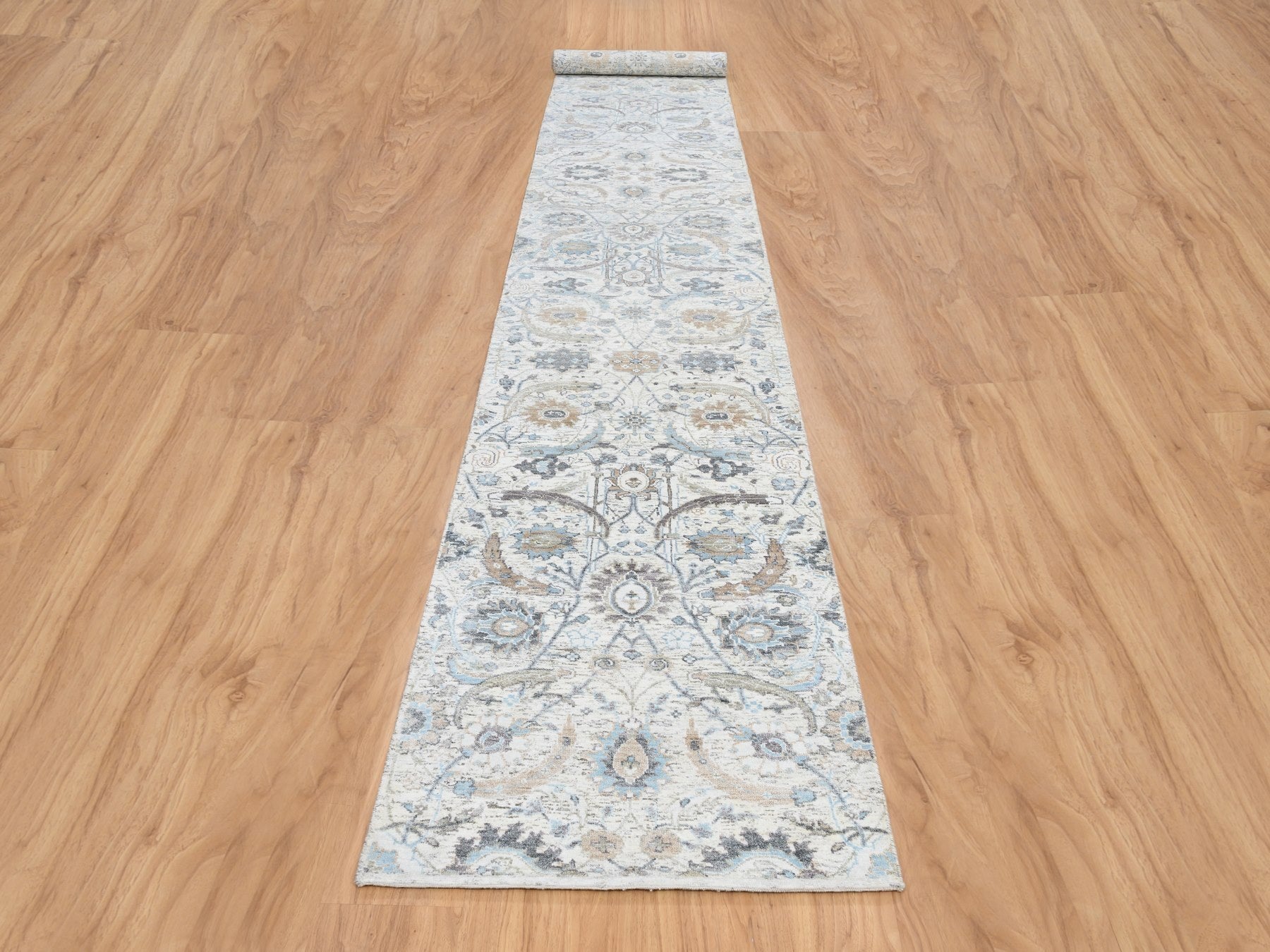 2'6" x 18'1" New Hand Knotted Ivory Wool & Silk Runner Oriental Rug - MOA10264652