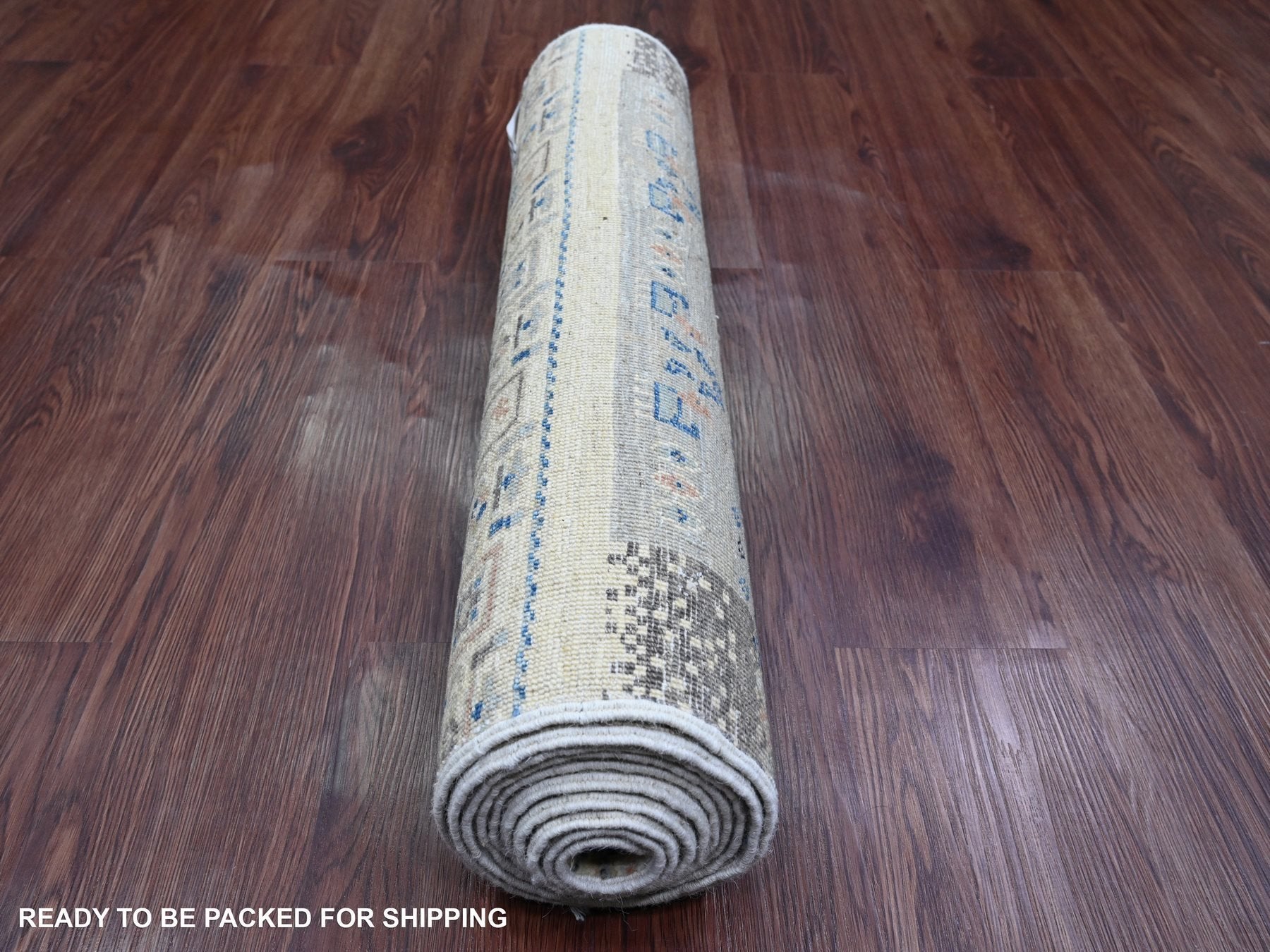 2'7" x 10'3" New Hand Knotted Ivory Wool Runner Oriental Rug - MOA10220123