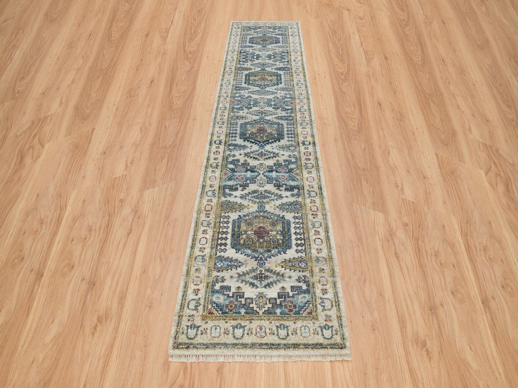 2'7" x 11'10" New Hand Knotted Ivory Wool Runner Oriental Rug - MOA10265634