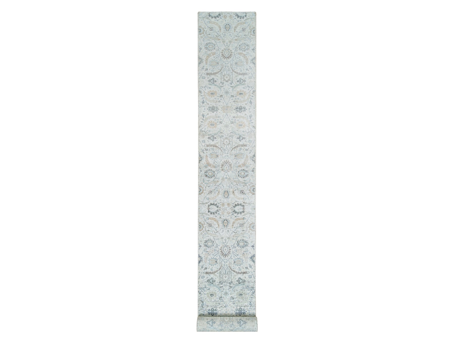 2'7" x 22'0" New Hand Knotted Ivory Wool & Silk Runner Oriental Rug - MOA10264904