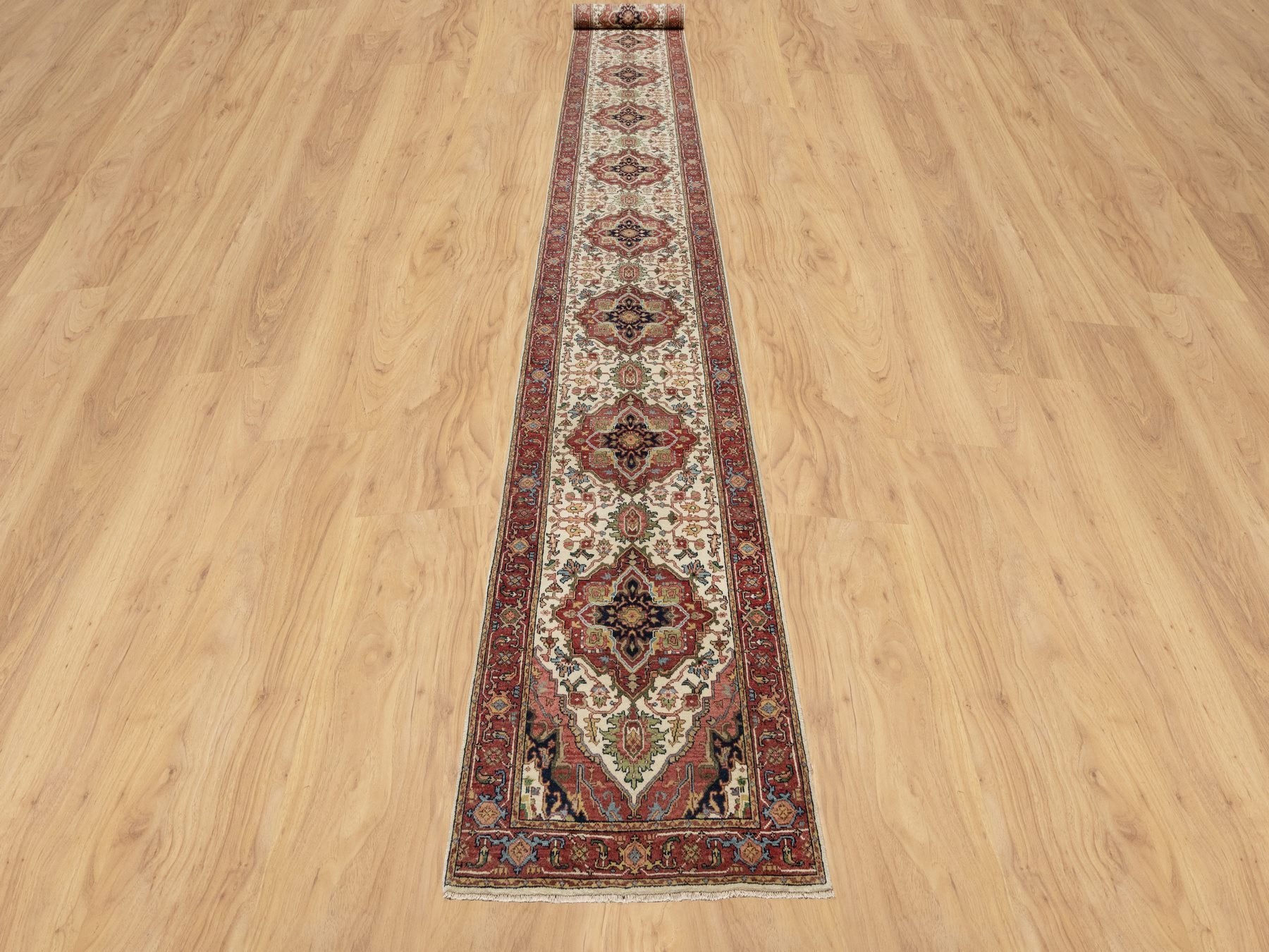 2'7" x 25'5" New Hand Knotted Ivory Wool Runner Oriental Rug - MOA10290751