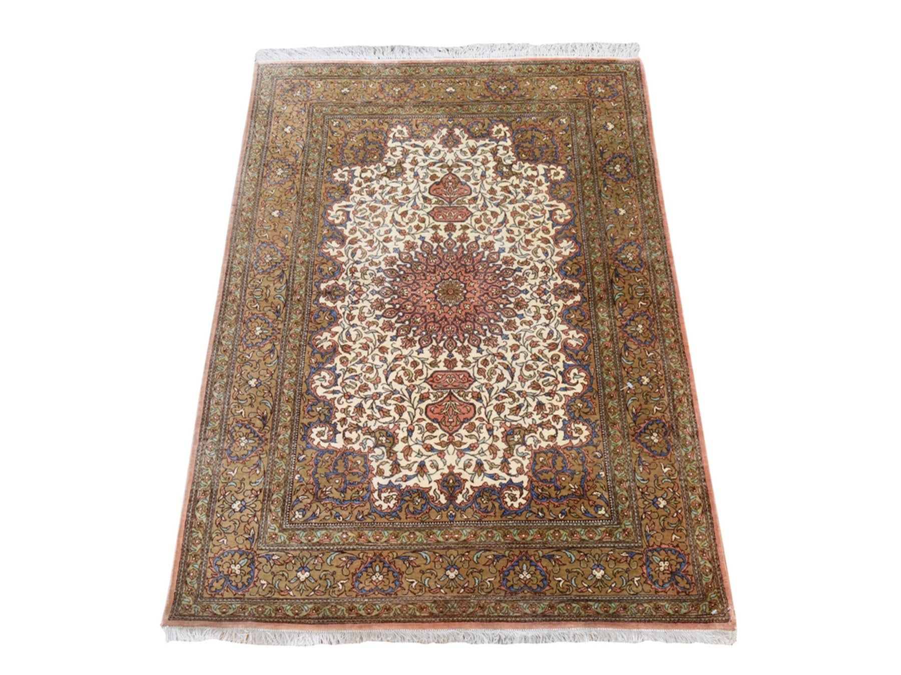 2'7" x 3'10" New Hand Knotted Ivory Silk Rectangle Oriental Rug - MOA10278469