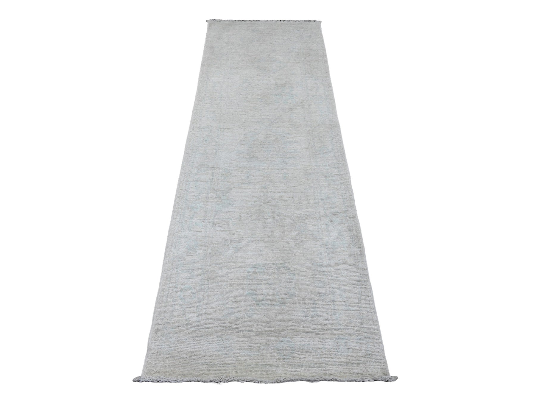 2'7" x 7'9" New Hand Knotted Ivory Wool Runner Oriental Rug - MOA10220588