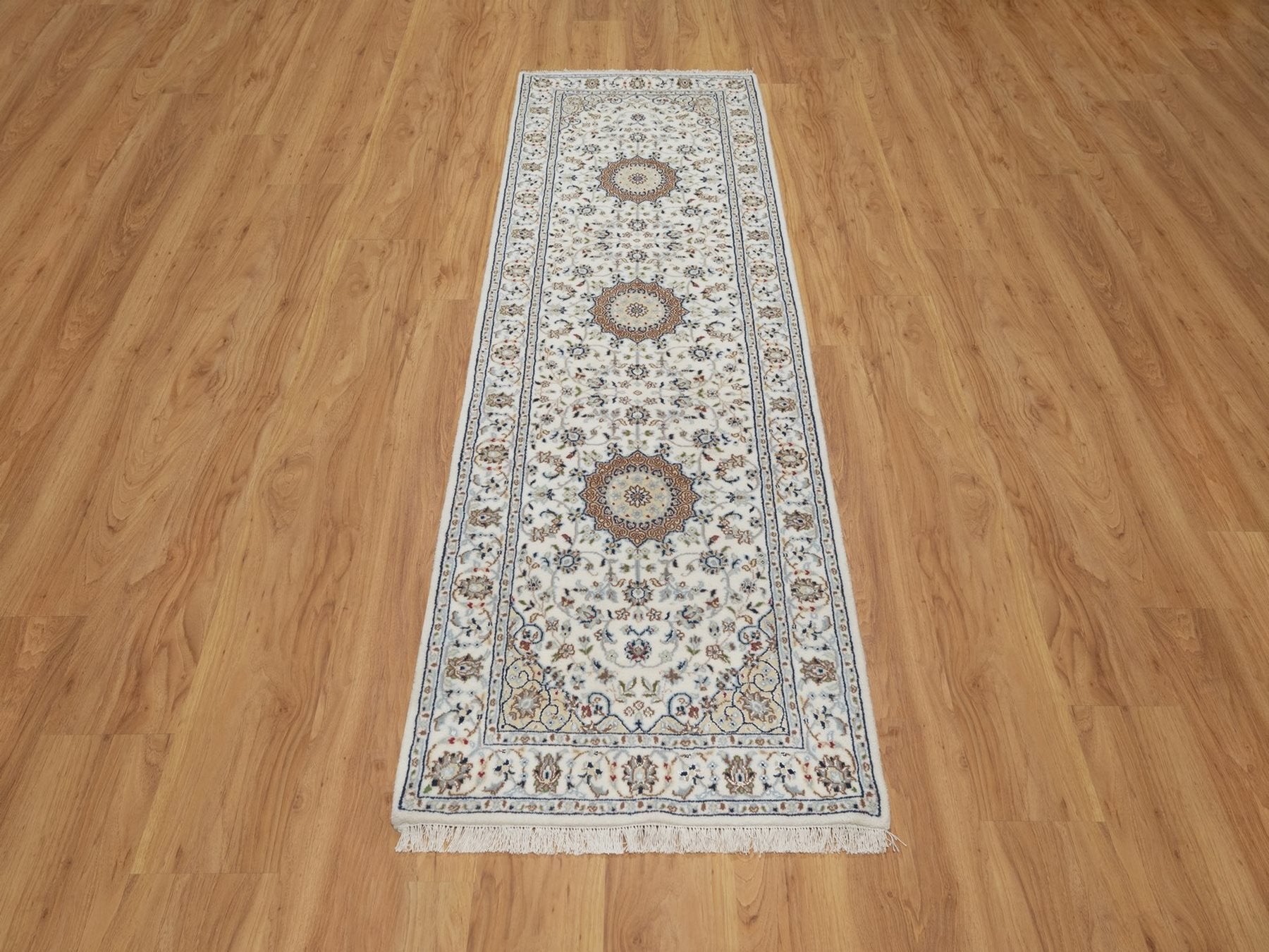 2'7" x 8'0" New Hand Knotted Ivory Wool & Silk Runner Oriental Rug - MOA10291584