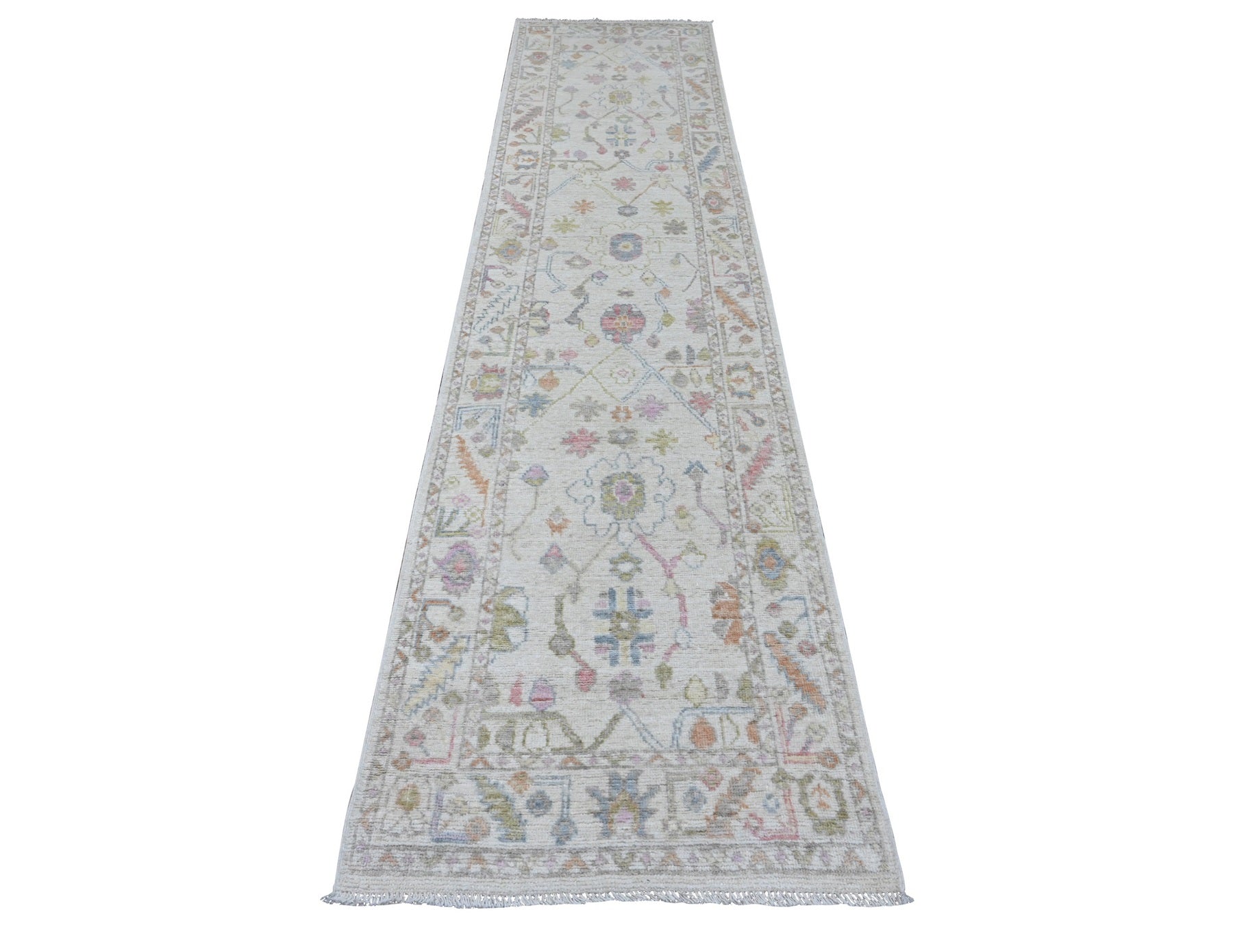2'8" x 11'8" New Hand Knotted Ivory Wool Runner Oriental Rug - MOA10289961