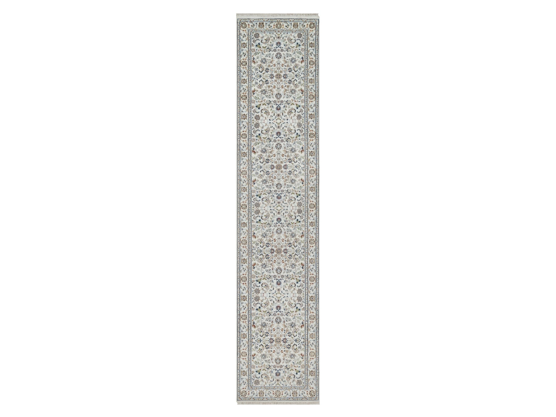 2'8" x 12'2" New Hand Knotted Ivory Wool & Silk Runner Oriental Rug - MOA10290991