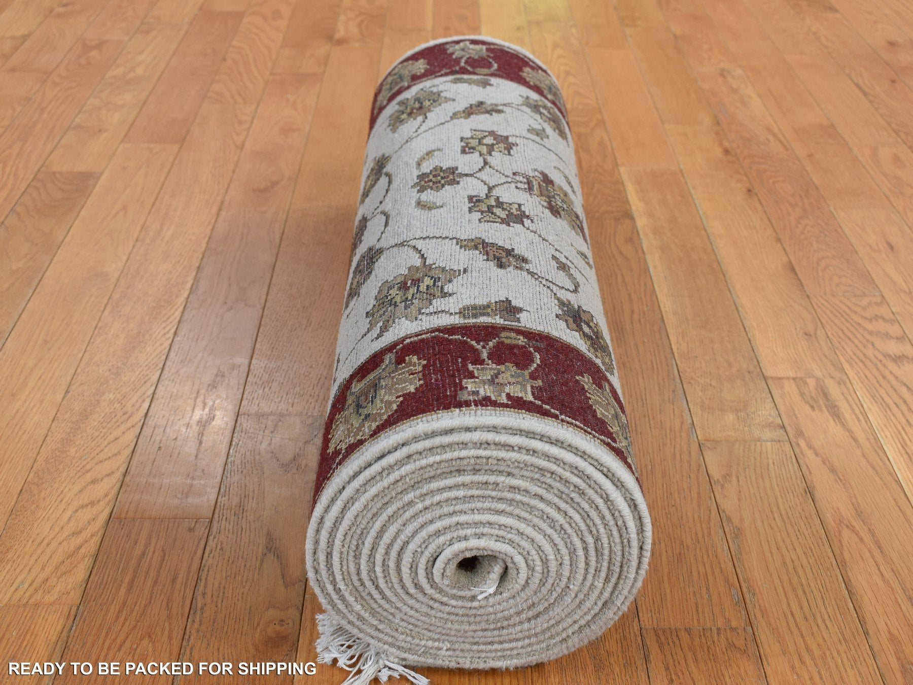 2'8" x 14'1" New Hand Knotted Ivory Wool & Silk Runner Oriental Rug - MOA10287628