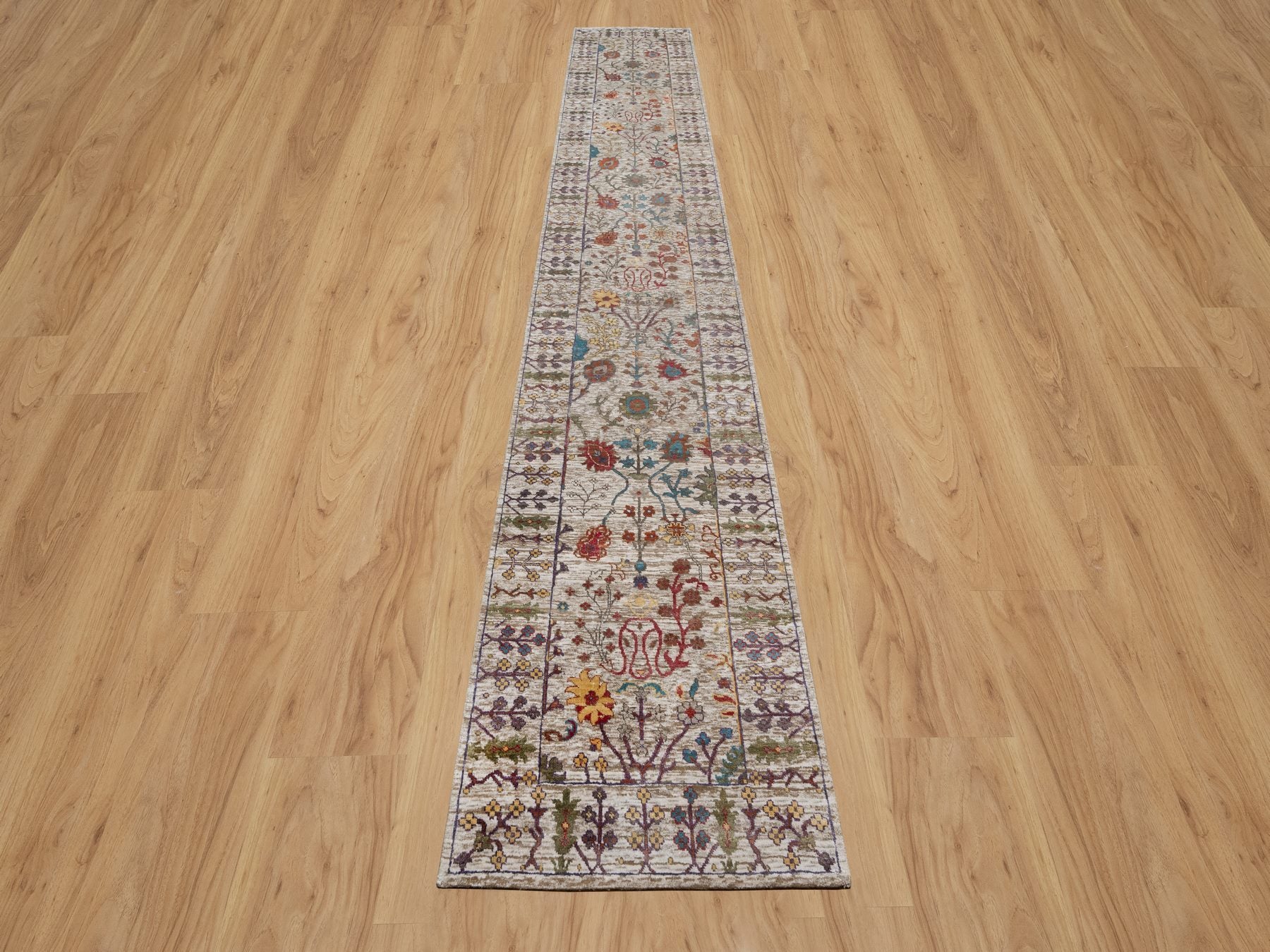 2'8" x 16'2" New Hand Knotted Ivory Wool & Silk Runner Oriental Rug - MOA10291176