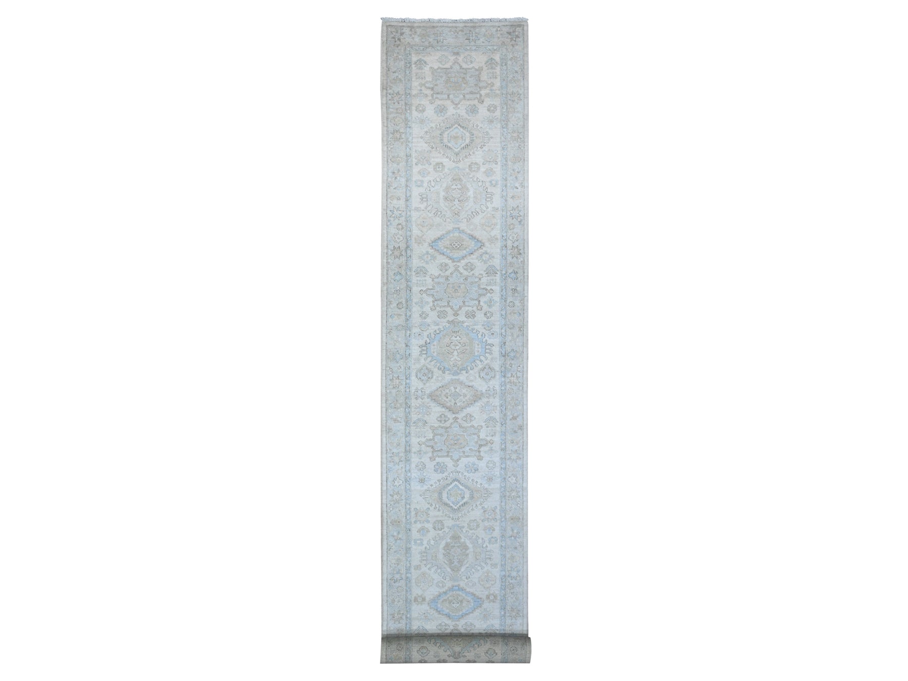 2'8" x 19'7" New Hand Knotted Ivory Wool Runner Oriental Rug - MOA10289505