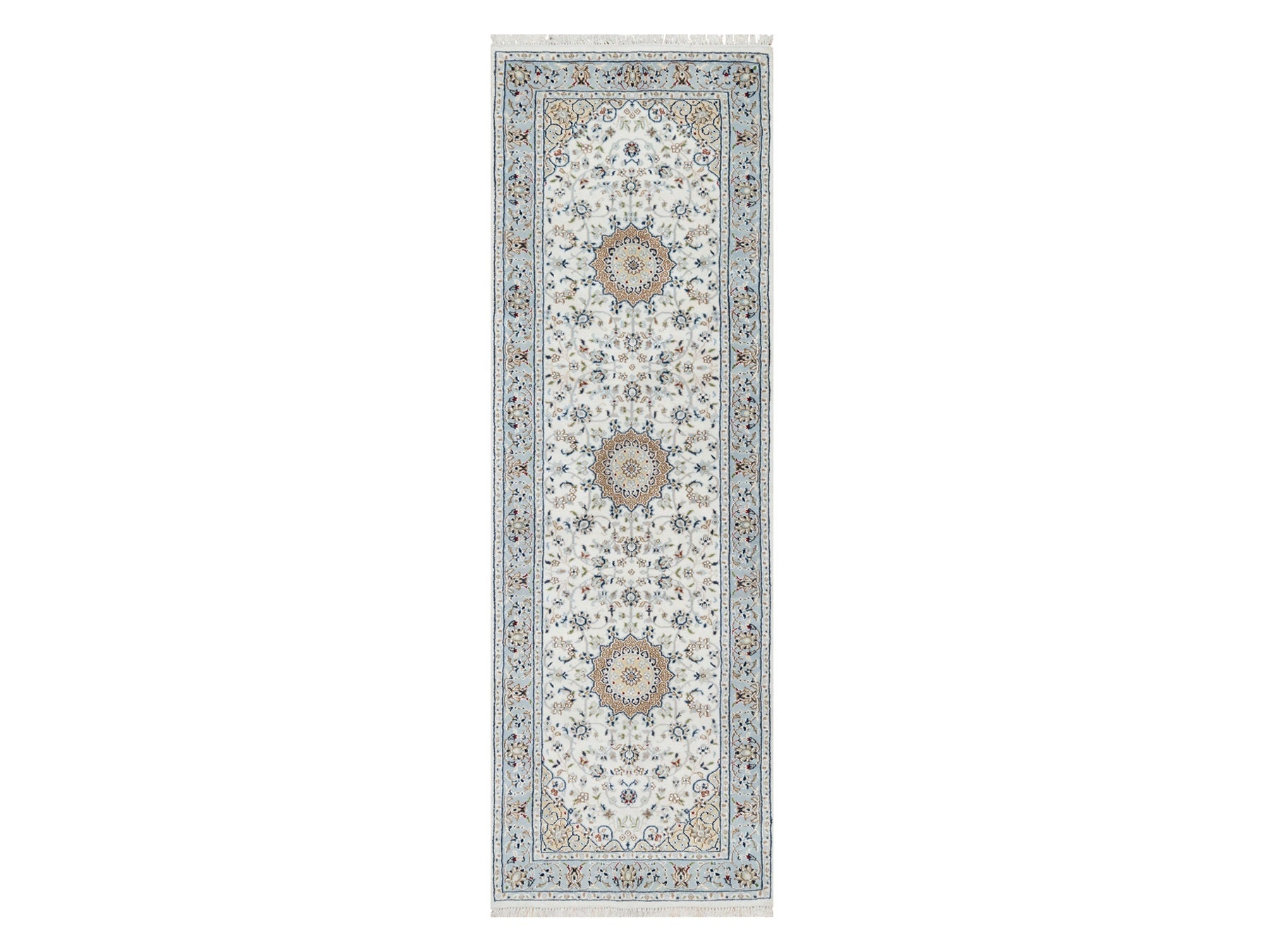 2'8" x 8'3" New Hand Knotted Ivory Wool & Silk Runner Oriental Rug - MOA10290881
