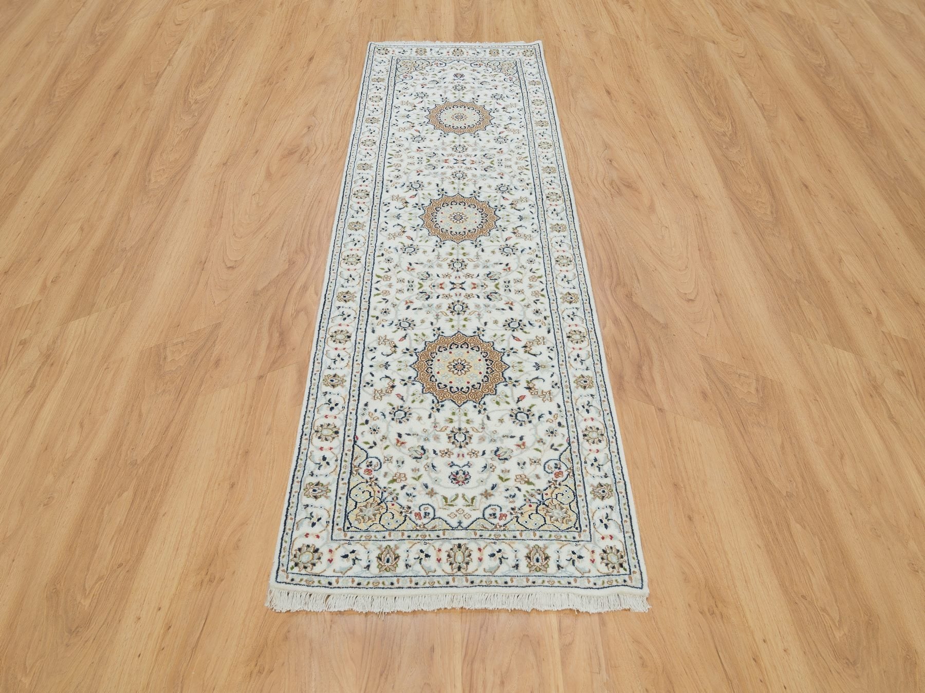 2'8" x 8'4" New Hand Knotted Ivory Wool Runner Oriental Rug - MOA10265985