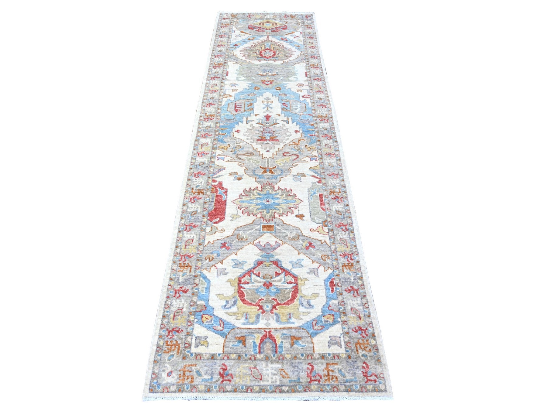 2'8" x 9'10" New Hand Knotted Ivory Wool Runner Oriental Rug - MOA10288545