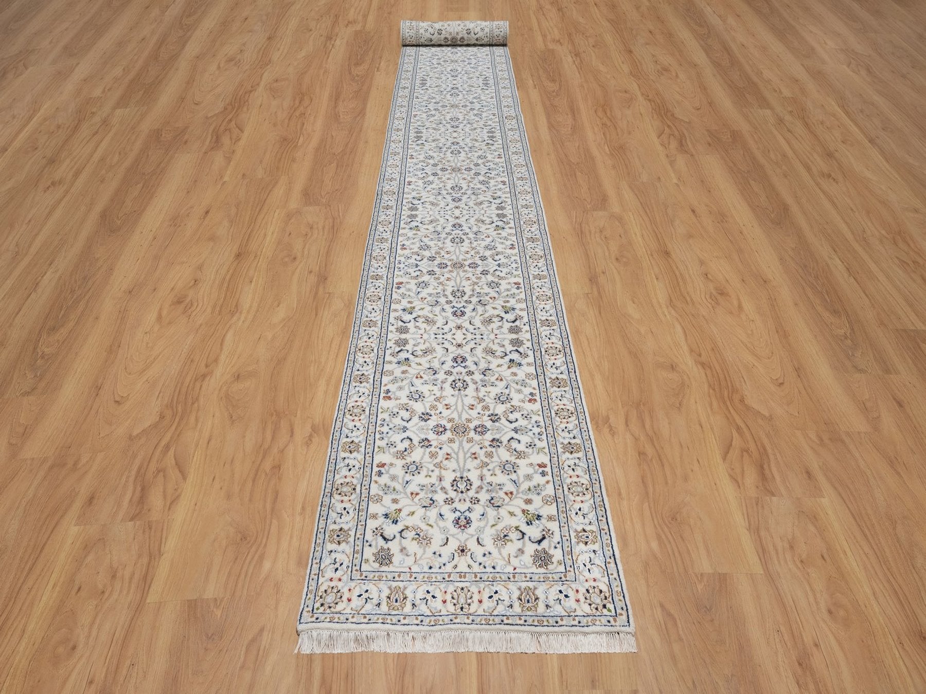 2'9" x 21'8" New Hand Knotted Ivory Wool & Silk Runner Oriental Rug - MOA10291619