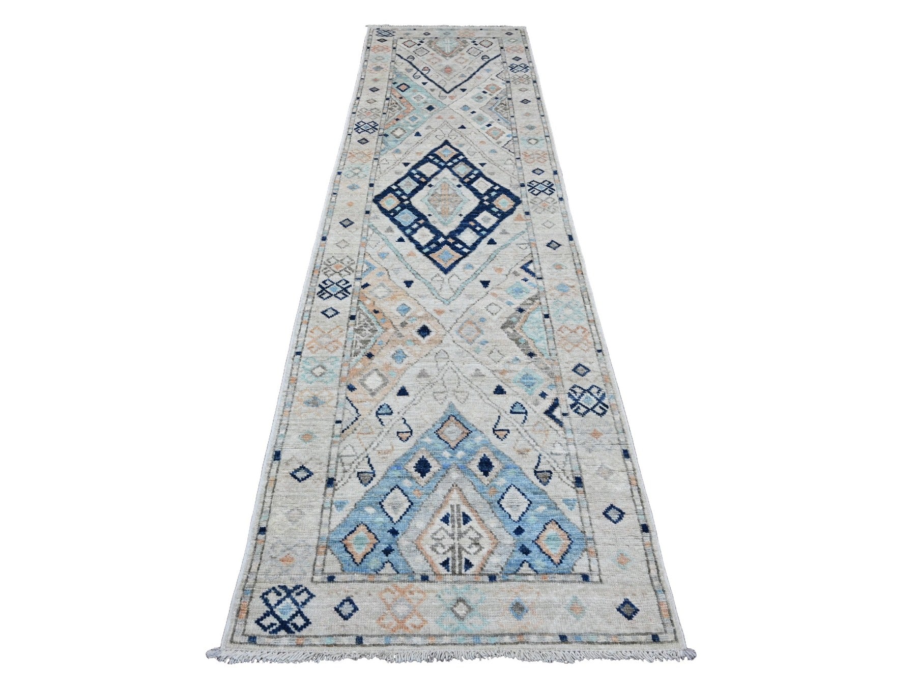 3'1" x 11'8" New Hand Knotted Ivory Wool Runner Oriental Rug - MOA10220530