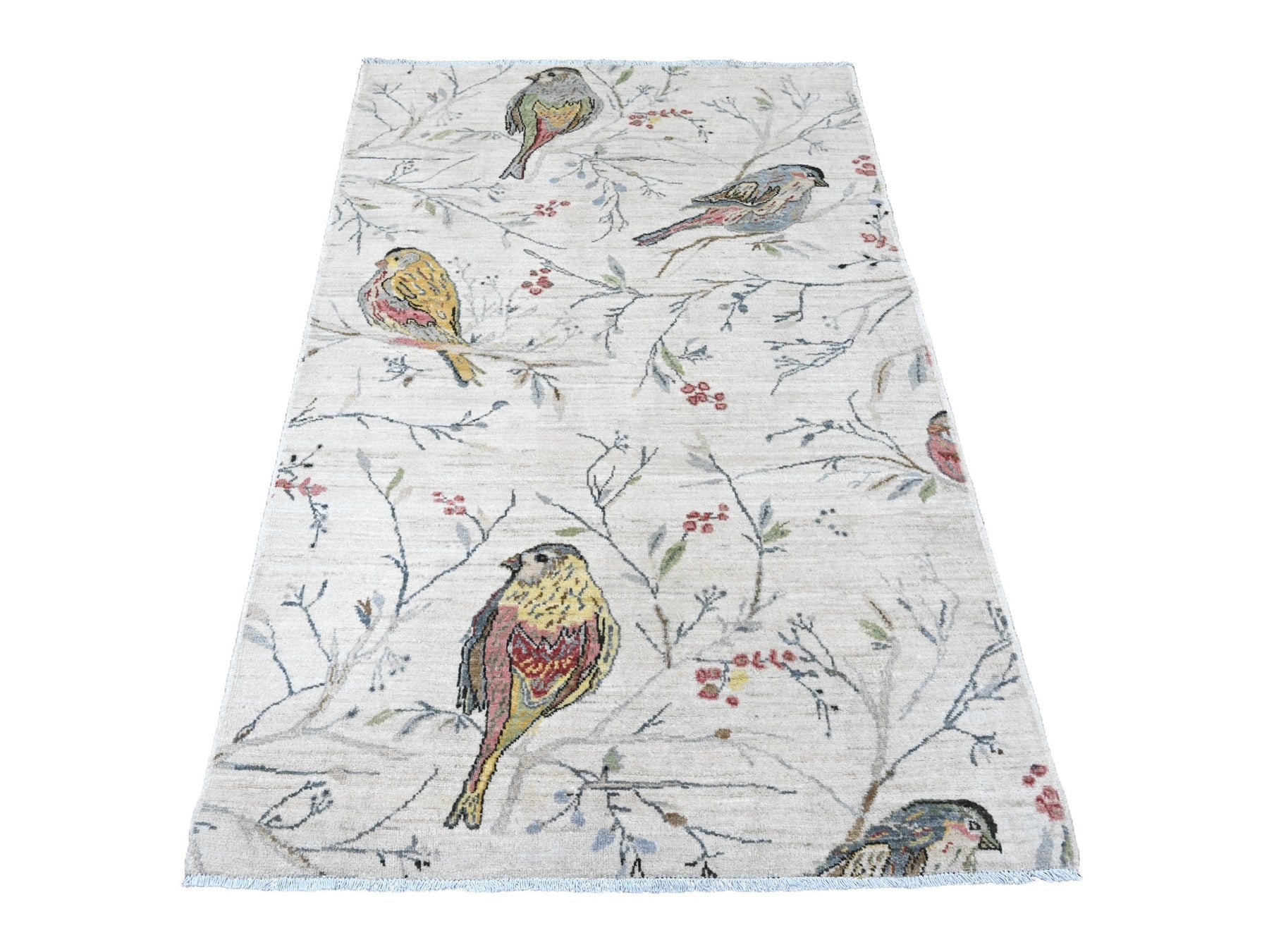 3'11" x 5'11" New Hand Knotted Ivory Wool Rectangle Oriental Rug - MOA10220955