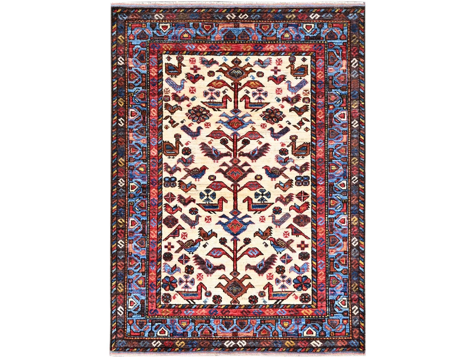 3'6" x 4'10" New Hand Knotted Ivory Wool Rectangle Oriental Rug - MOA10286991