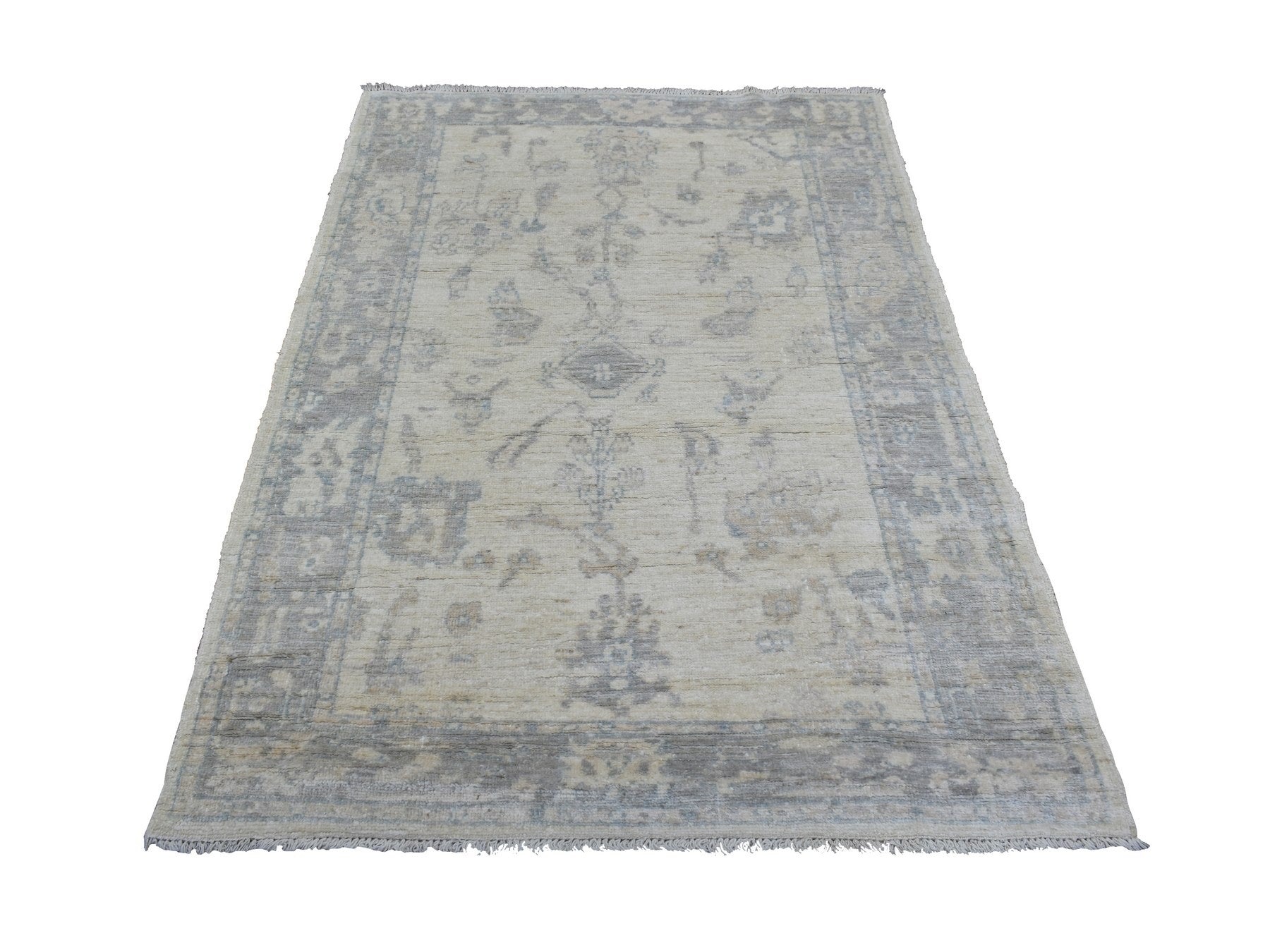 4'0" x 6'0" New Hand Knotted Ivory Wool Rectangle Oriental Rug - MOA10270040