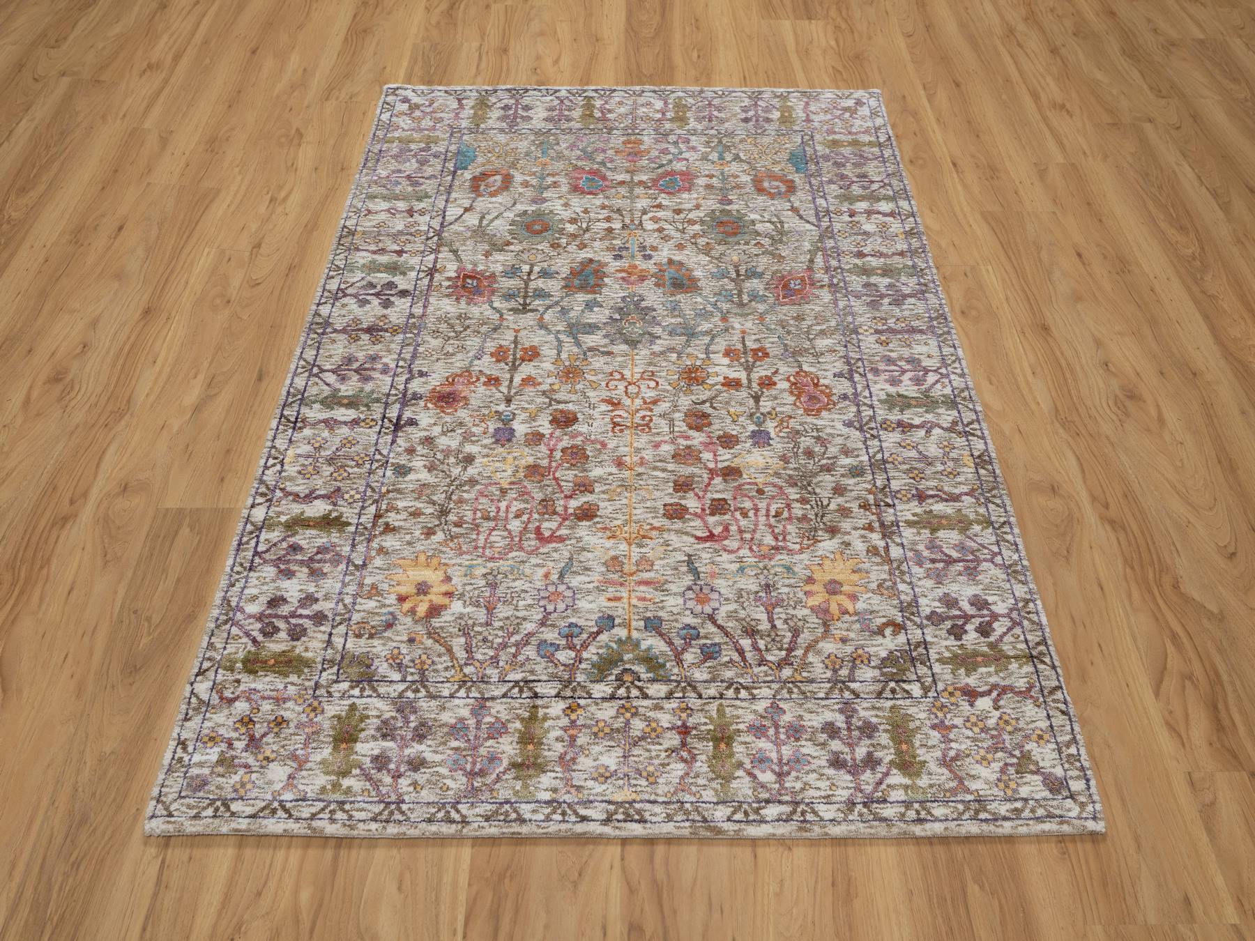 4'0" x 6'1" New Hand Knotted Ivory Wool & Silk Rectangle Oriental Rug - MOA10291138