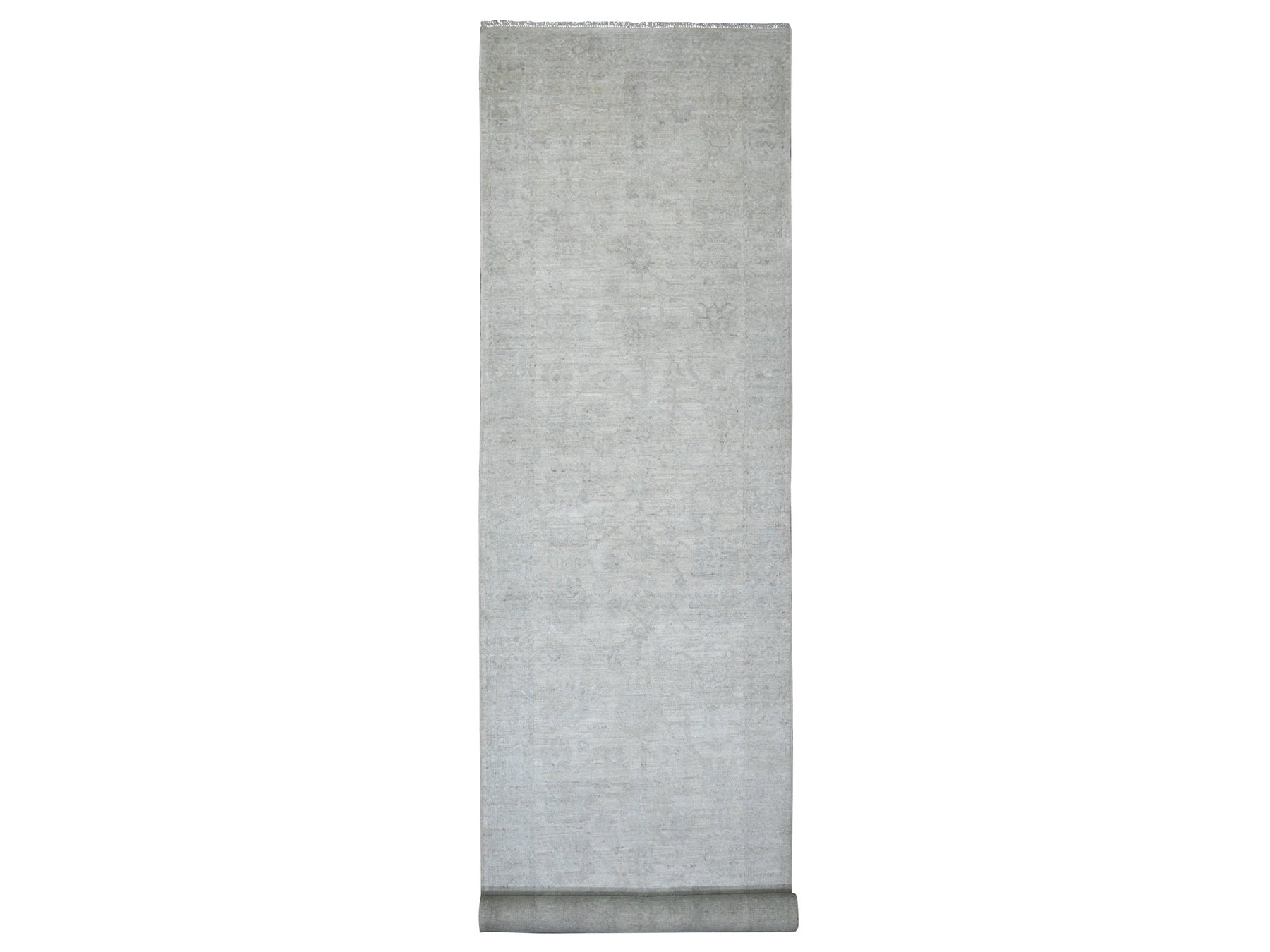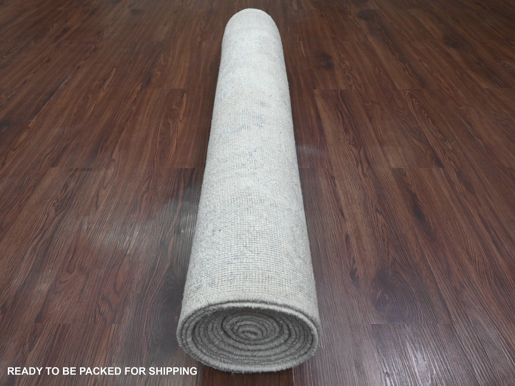 4'1" x 19'8" New Hand Knotted Ivory Wool Runner Oriental Rug - MOA10220878