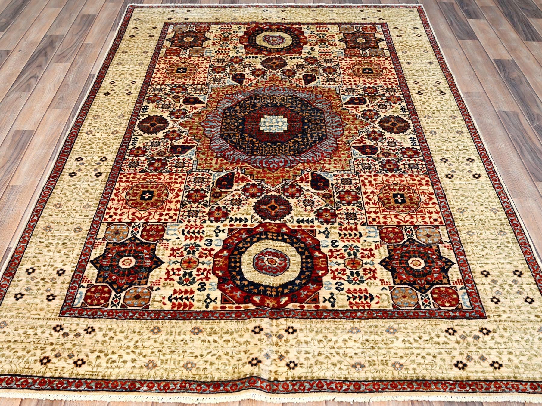 4'10" x 7'0" New Hand Knotted Ivory Wool Rectangle Oriental Rug - MOA10285865